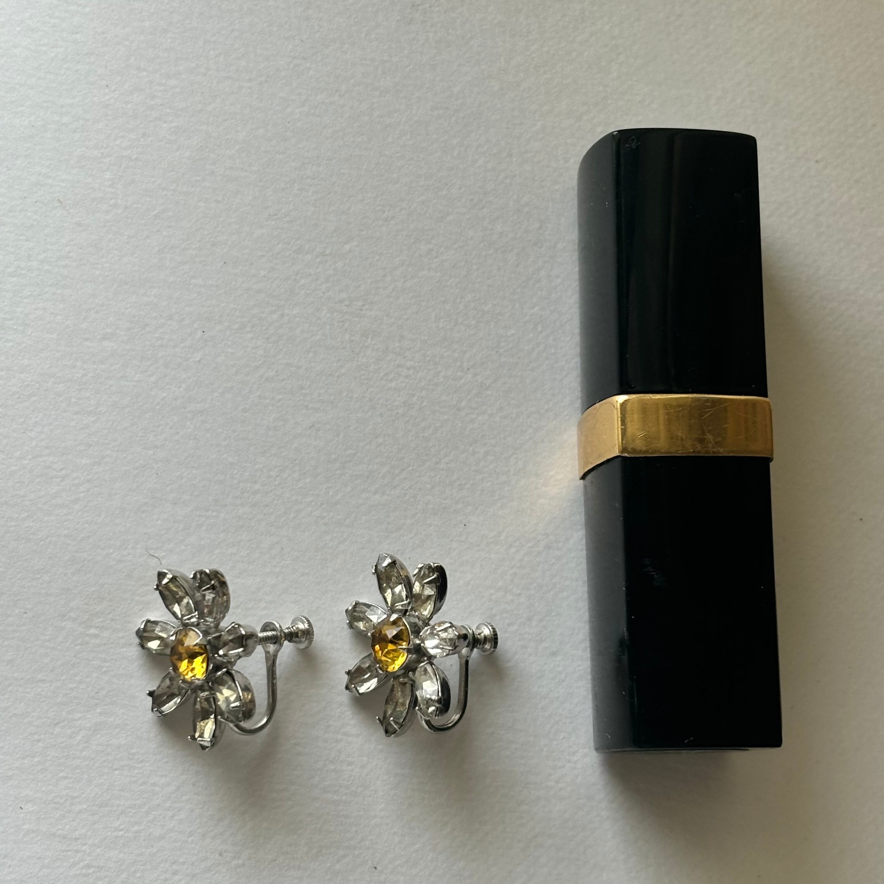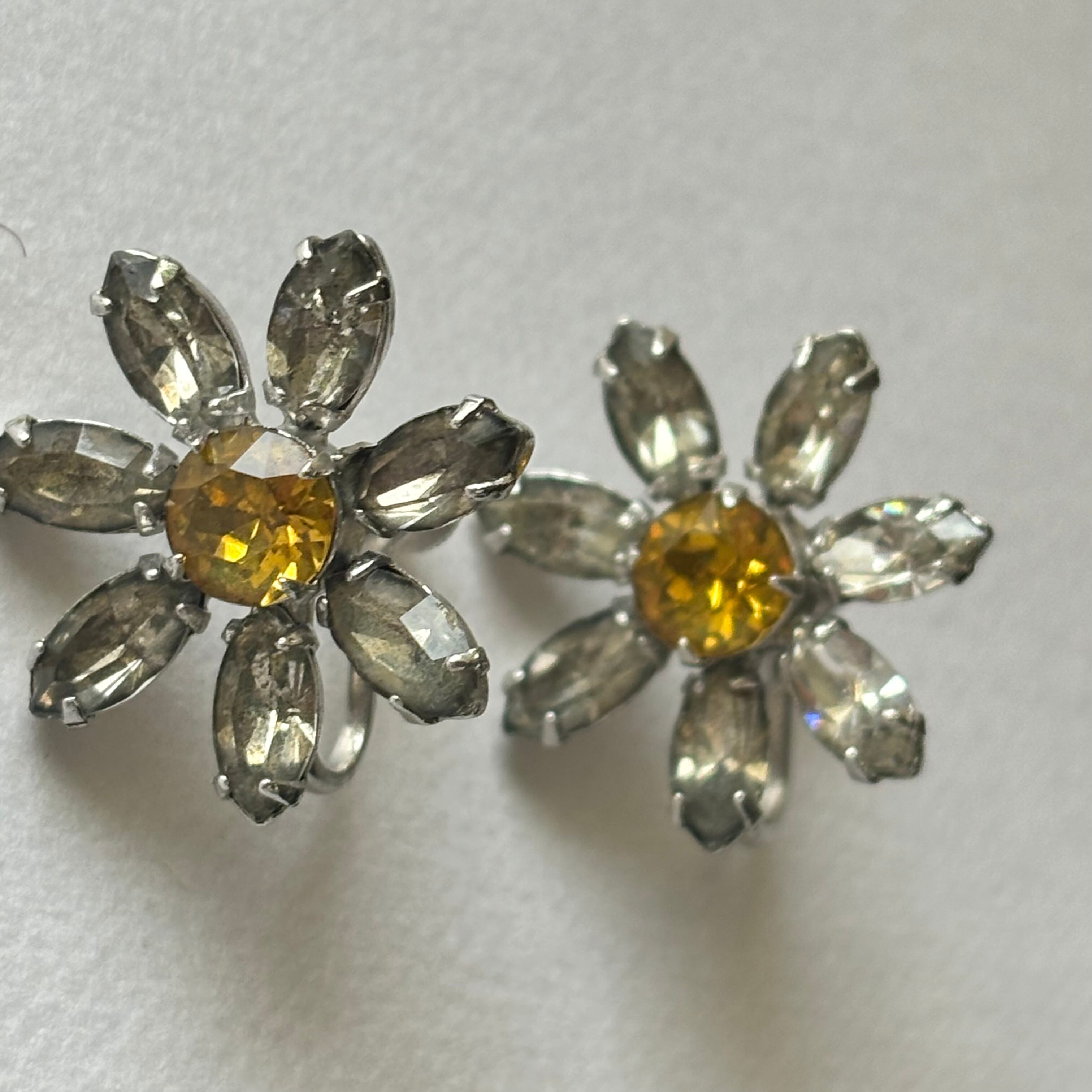 ラインストーン×フラワーのイヤリングです。