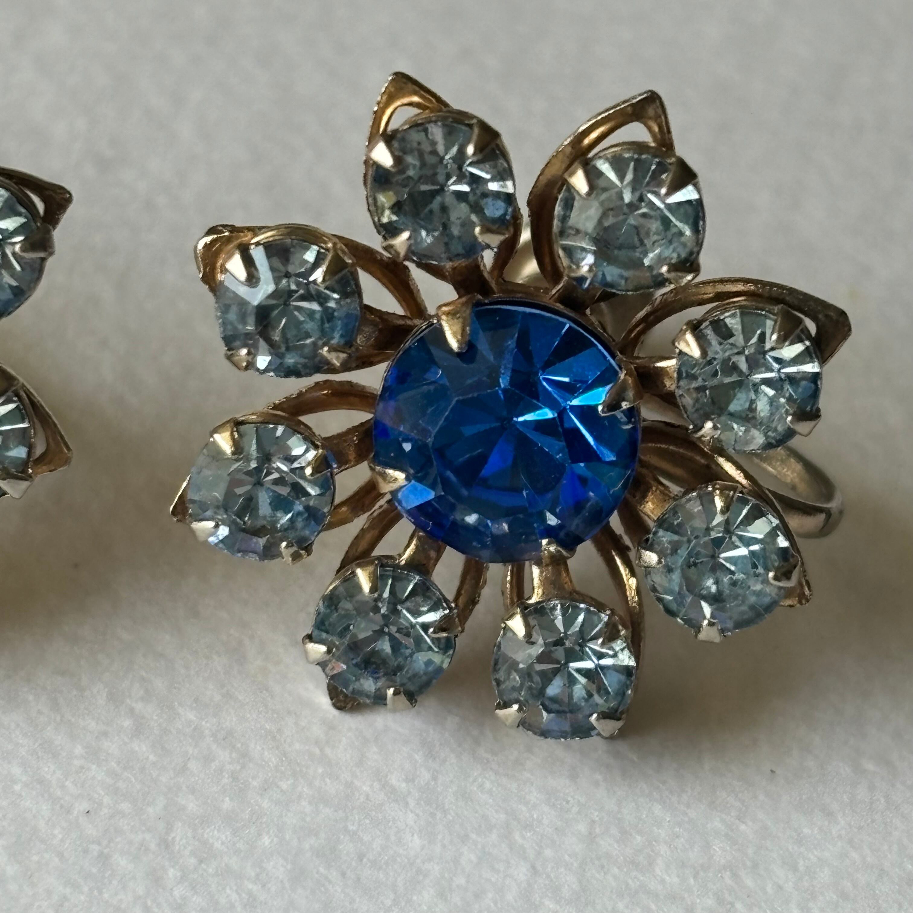 ブルー×ラインストーンのイヤリングです。
