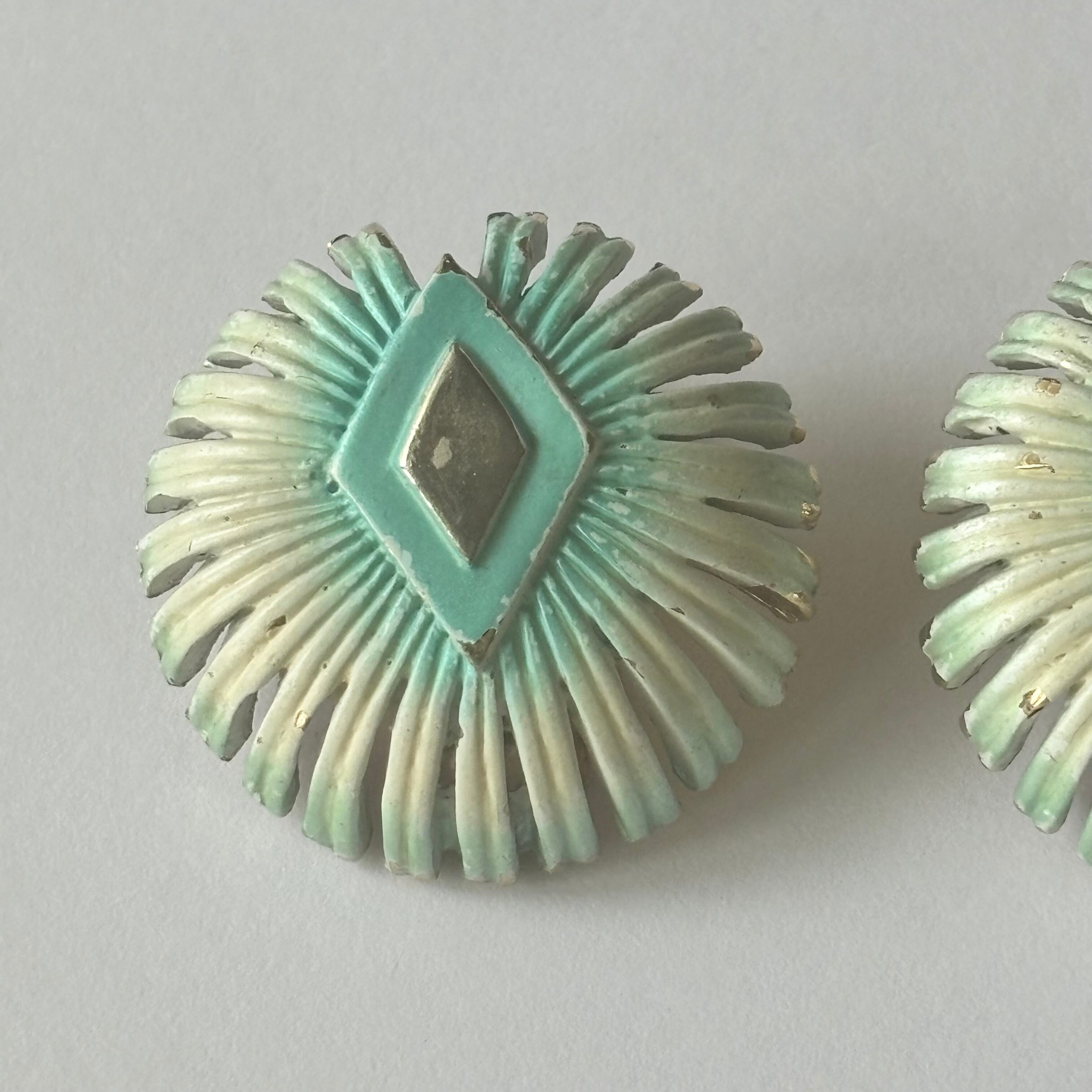 ブルー×クリームのグラデーションのイヤリングです。ヴィンテージらしいロマンチックかつ儚い世界観が非常に美しいです。このペイントの剥がれ方も雰囲気が出て良いですよ。
