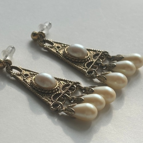 ゴールド×パールのピアスです。パールがしゃらしゃらと動くのが特徴です。