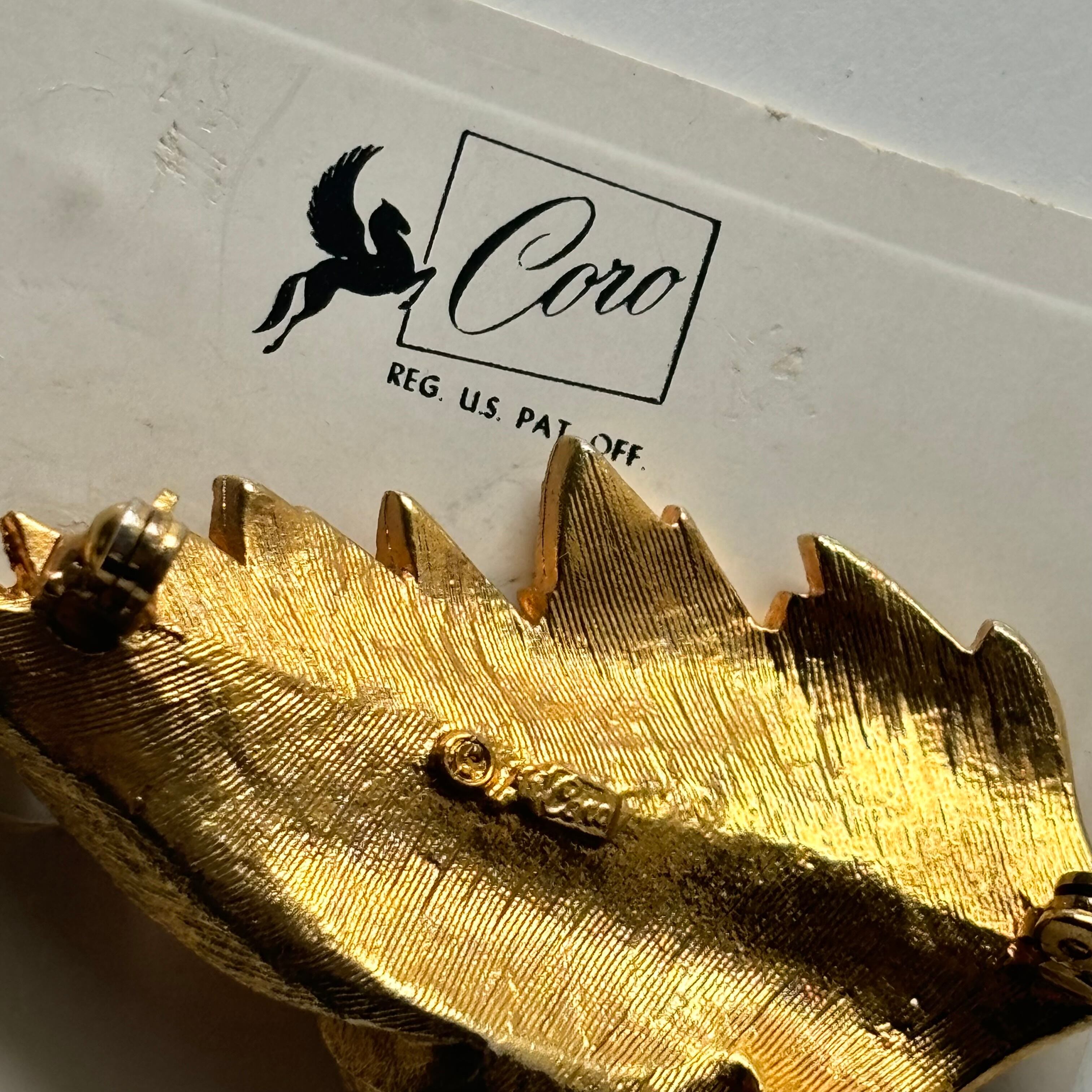 アメリカのコスチュームジュエリーブランドCoroのラインのひとつ、"Coro Pegasus(コロ・ペガサス)のブローチです。重厚感があり、しっかりとしたつくりが見てとれます。
