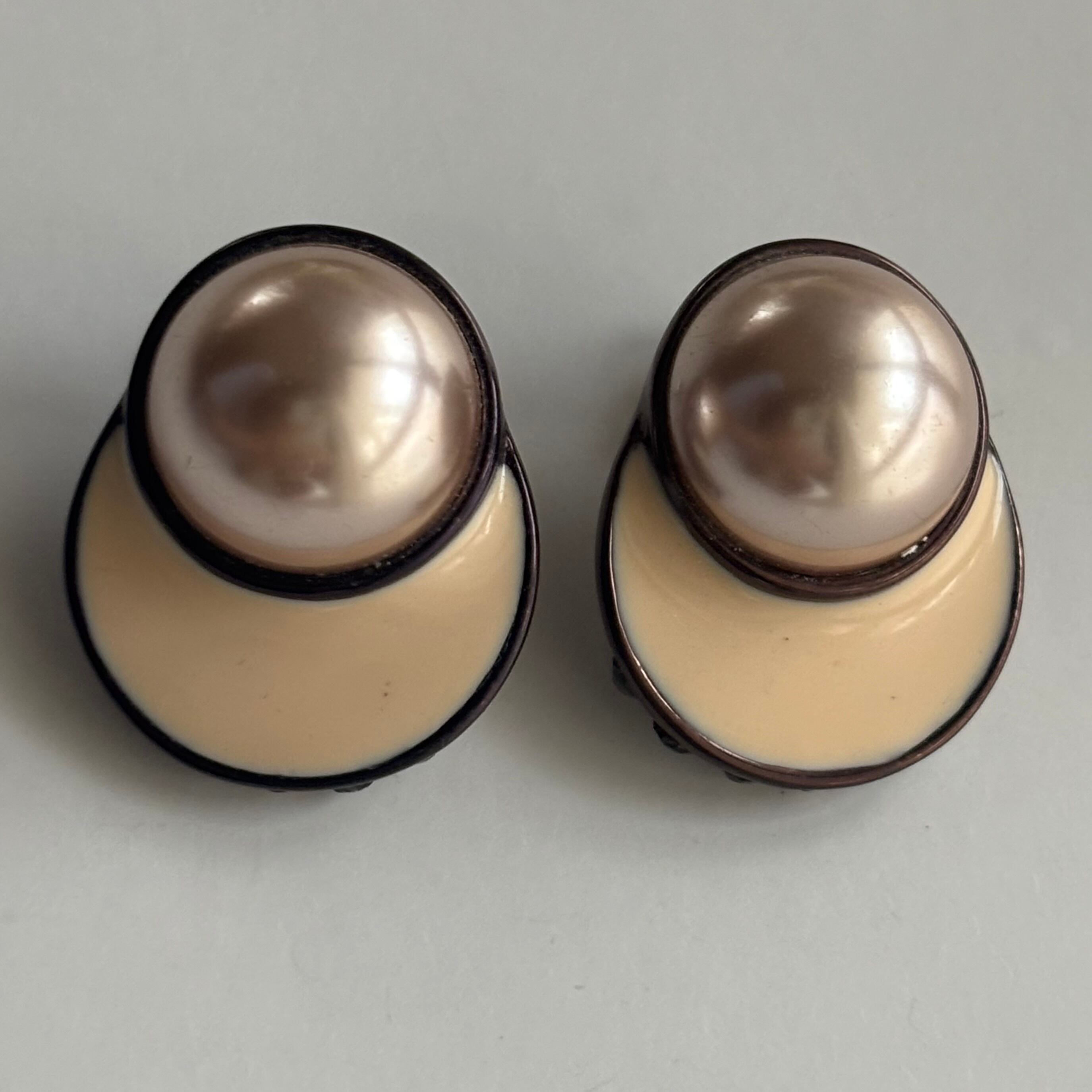 パール×エナメル×ラインストーンのピアスです。