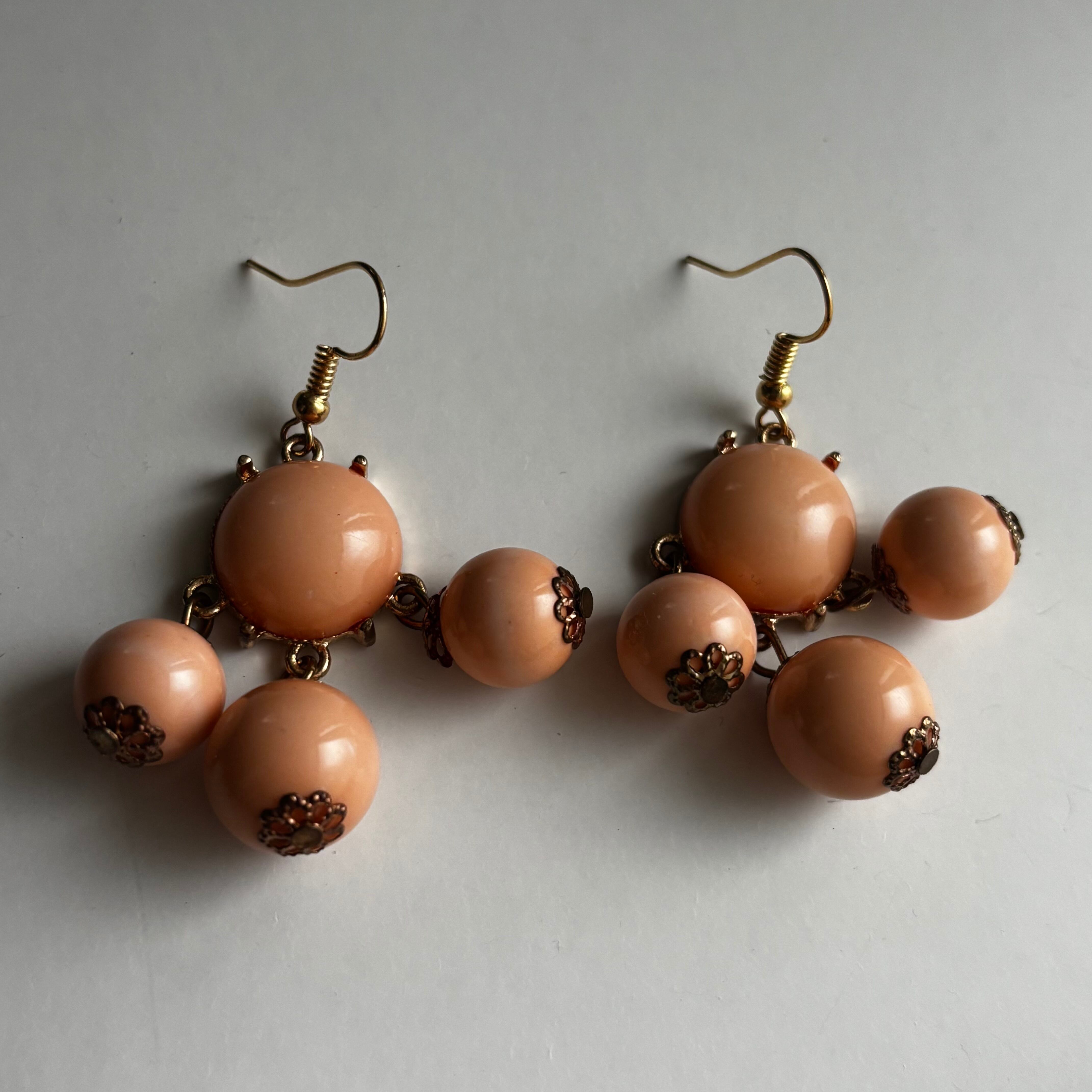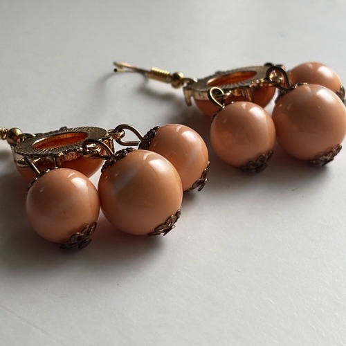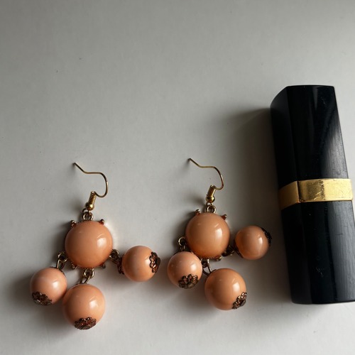 オレンジのボールがしゃらしゃらと動くピアスです。明るすぎないオレンジでコーディネートにも取り入れやすいですよ。