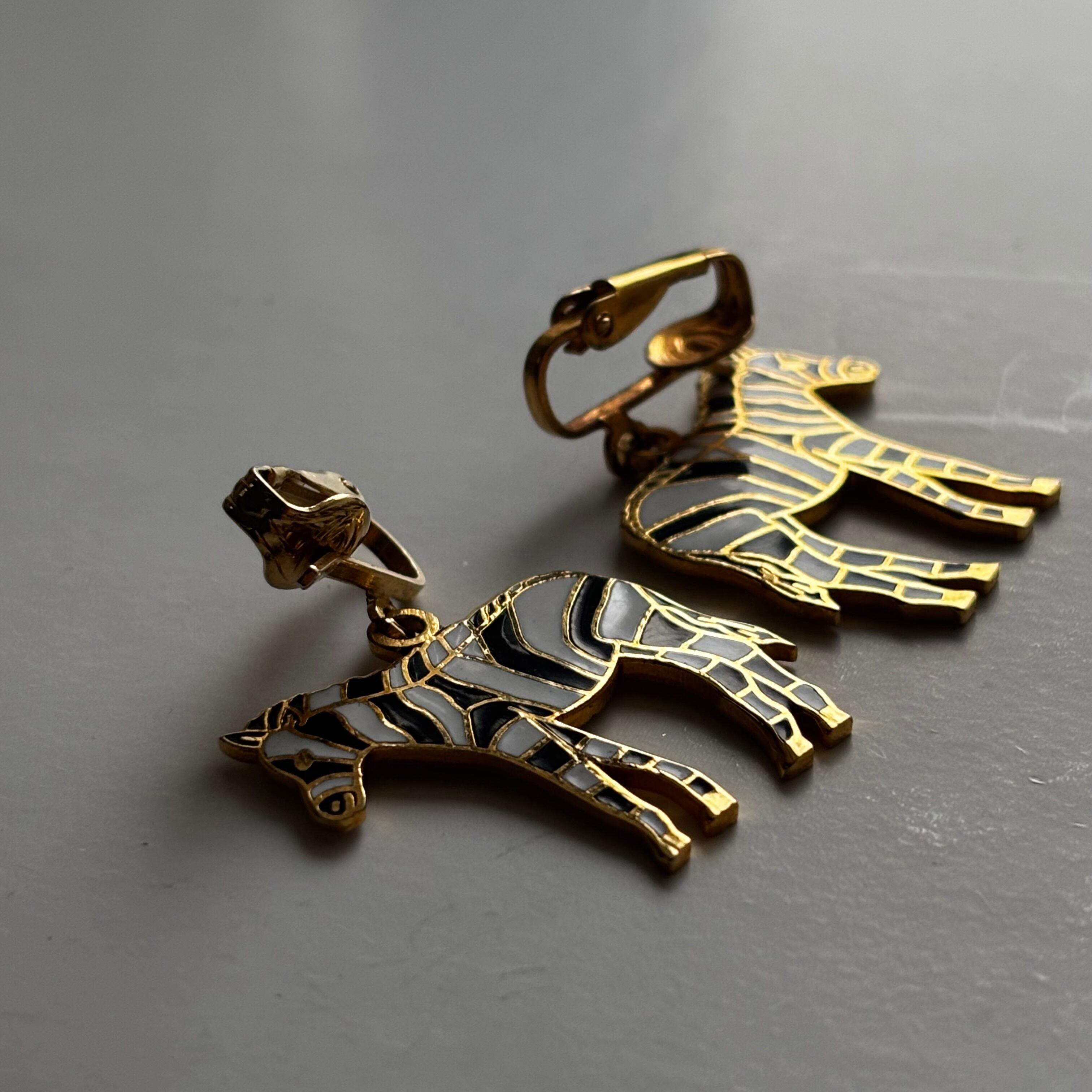 アジアンヴィンテージとして近年大変人気が高く、当店でも人気がある七宝焼きのジュエリーです。ボタニカルなモチーフはよく見ますがこちらは珍しいしまうまがモチーフになっています。個性的なジュエリーをお探しの方におすすめです。