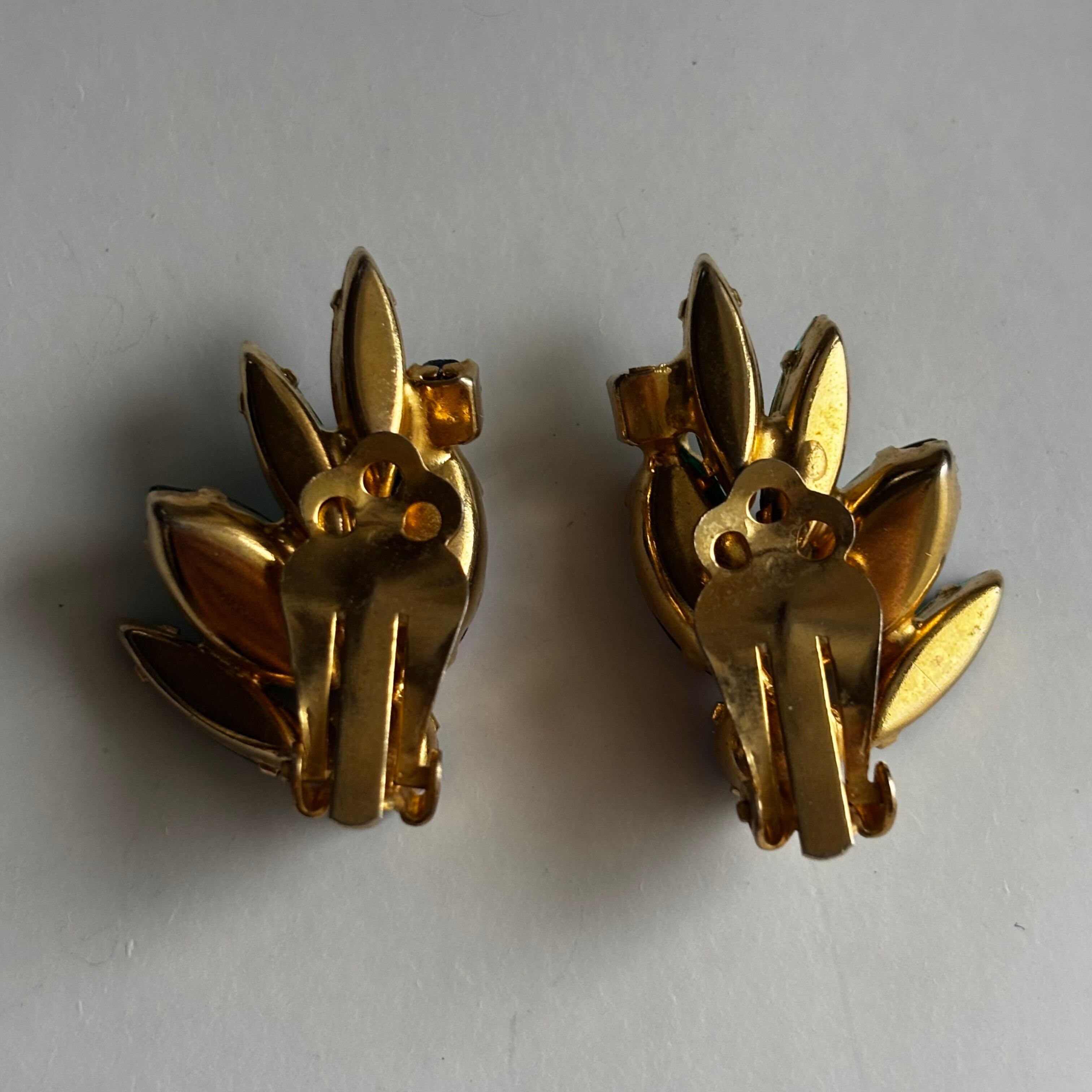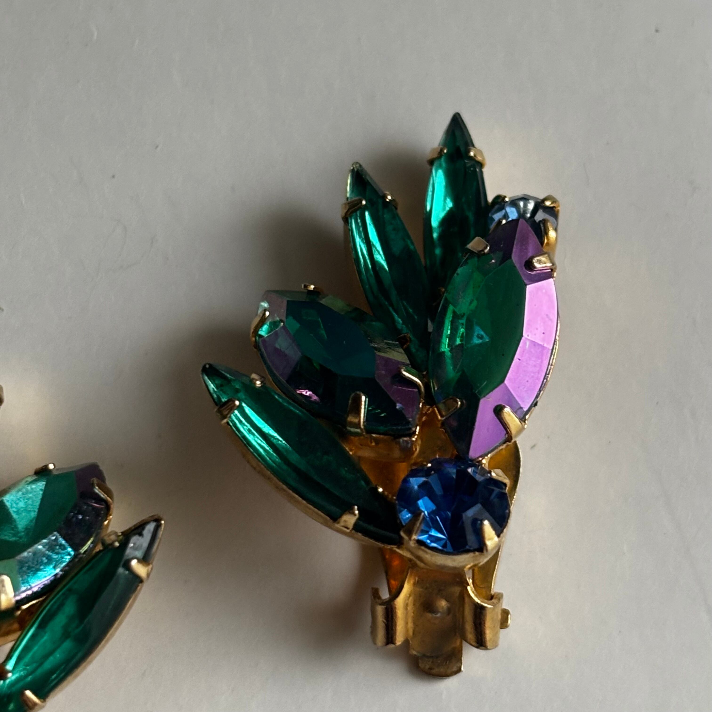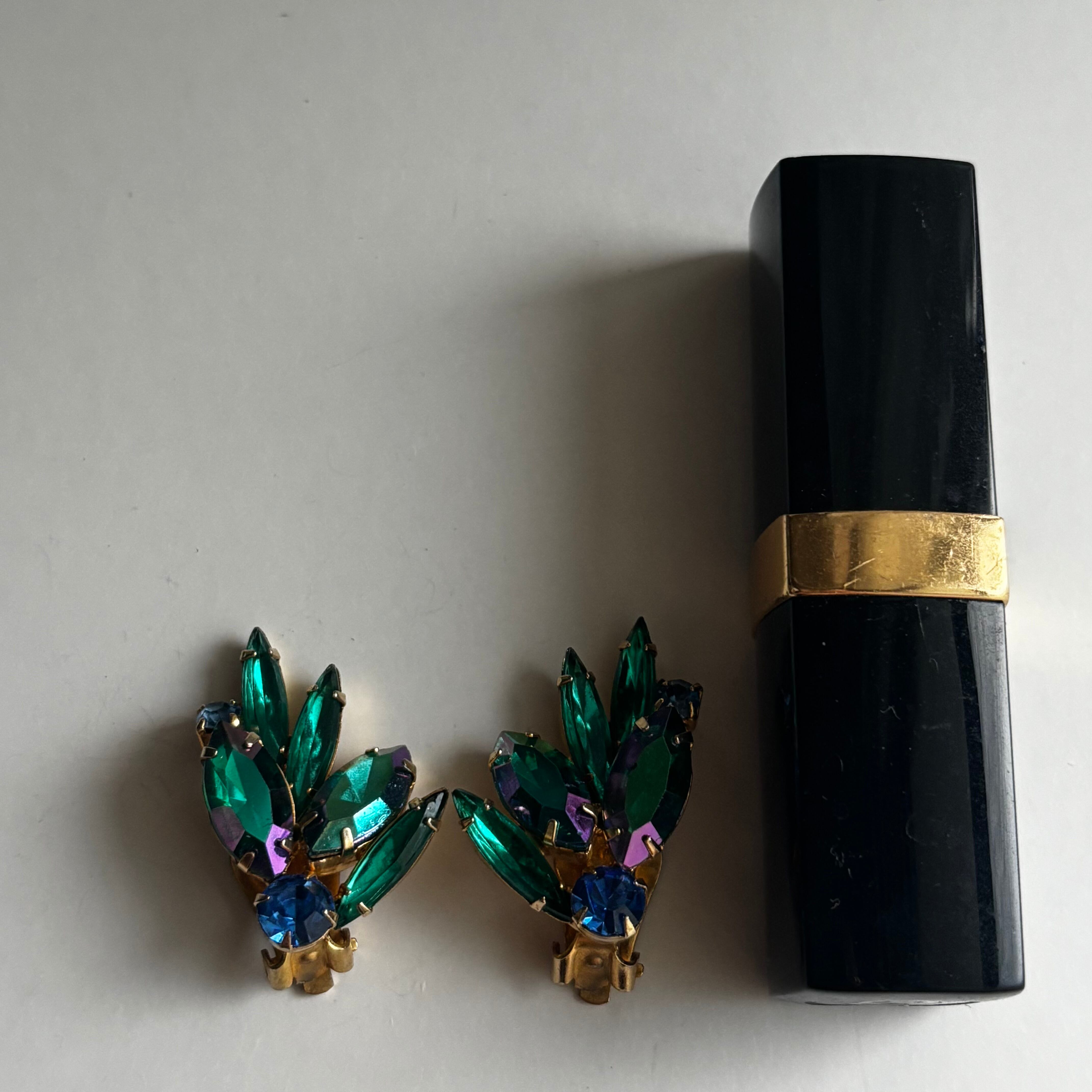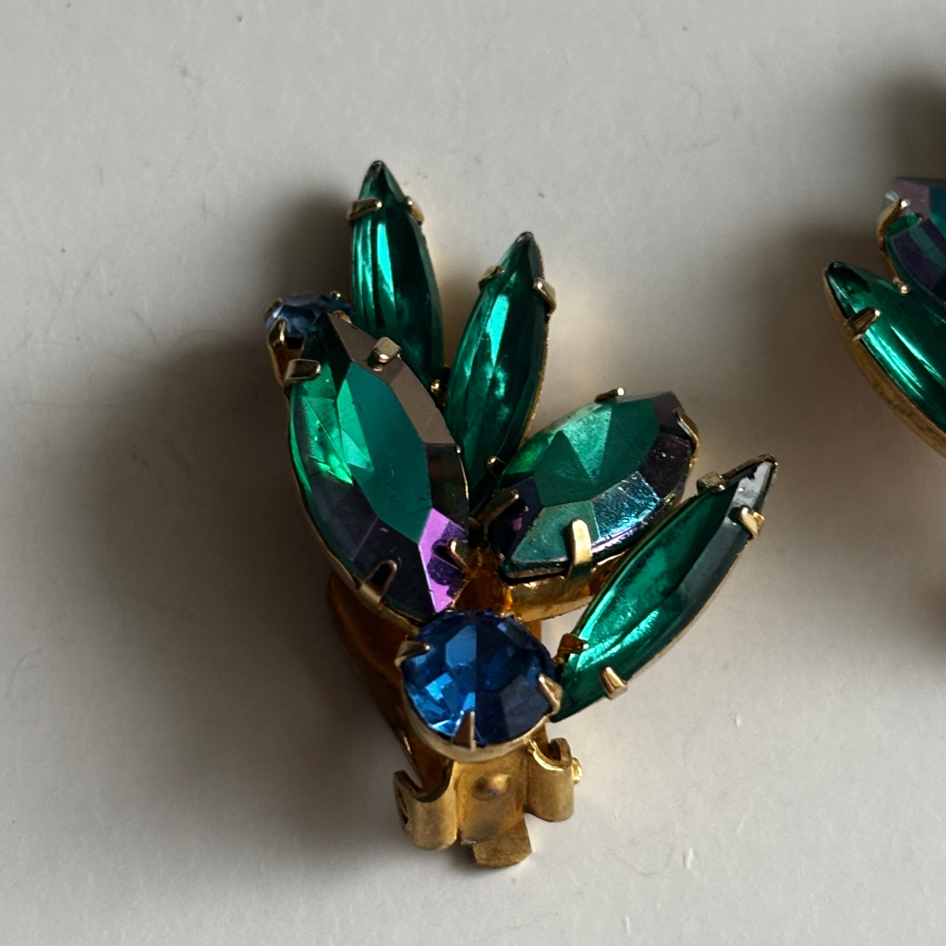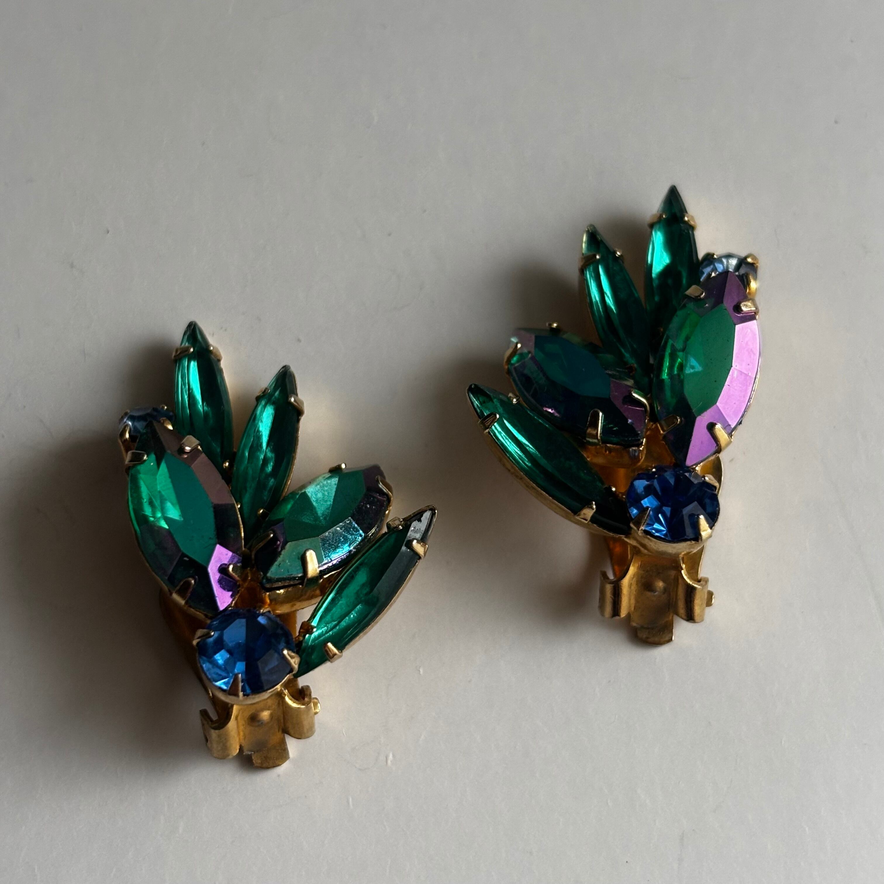 鮮やかなピーコックグリーンが非常に美しく、ゴージャスな印象のイヤリングです。日本ではなかなか出会えなさそうな特徴的なカラーリングが個性的な逸品です。