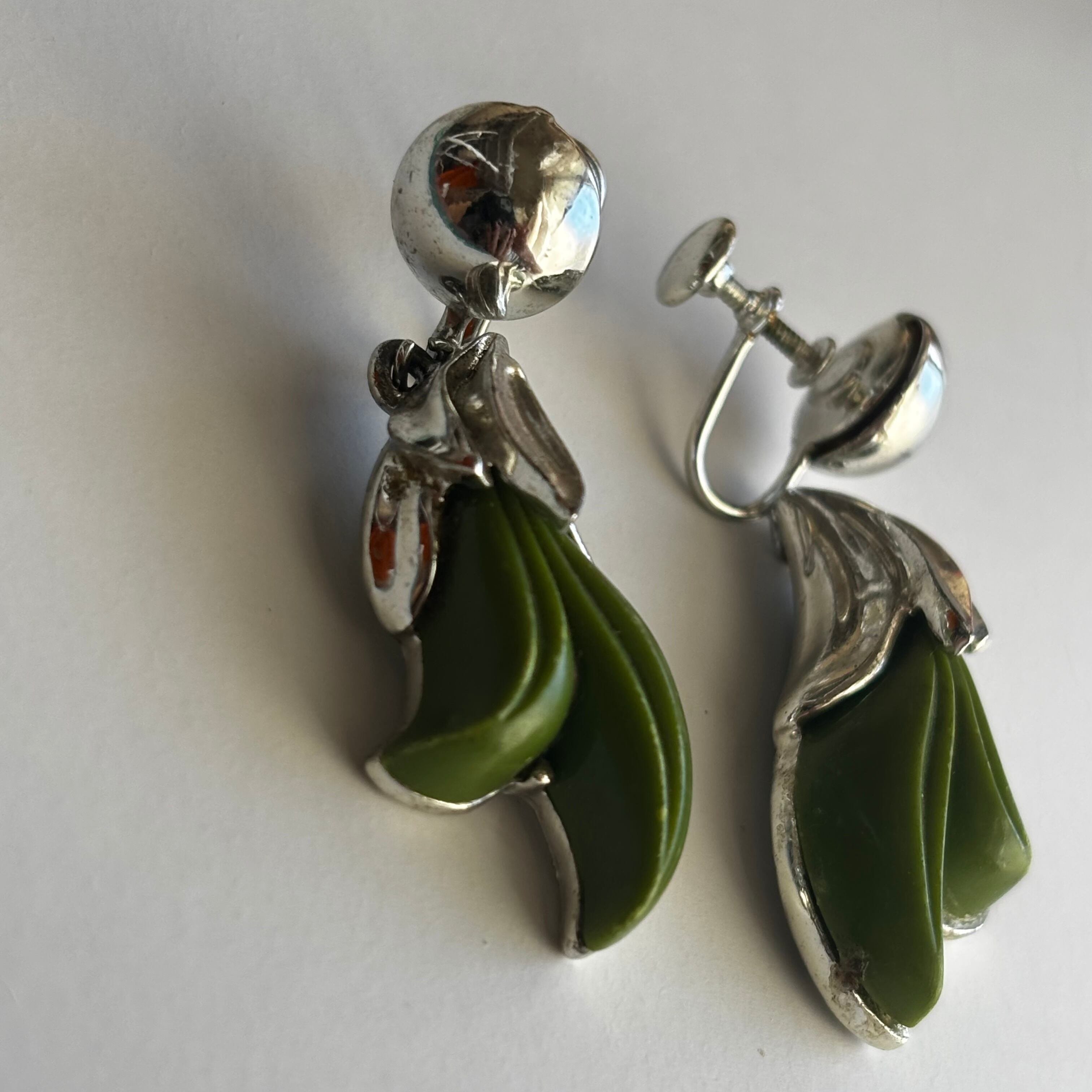 深みあるグリーン×シルバーのイヤリングです。