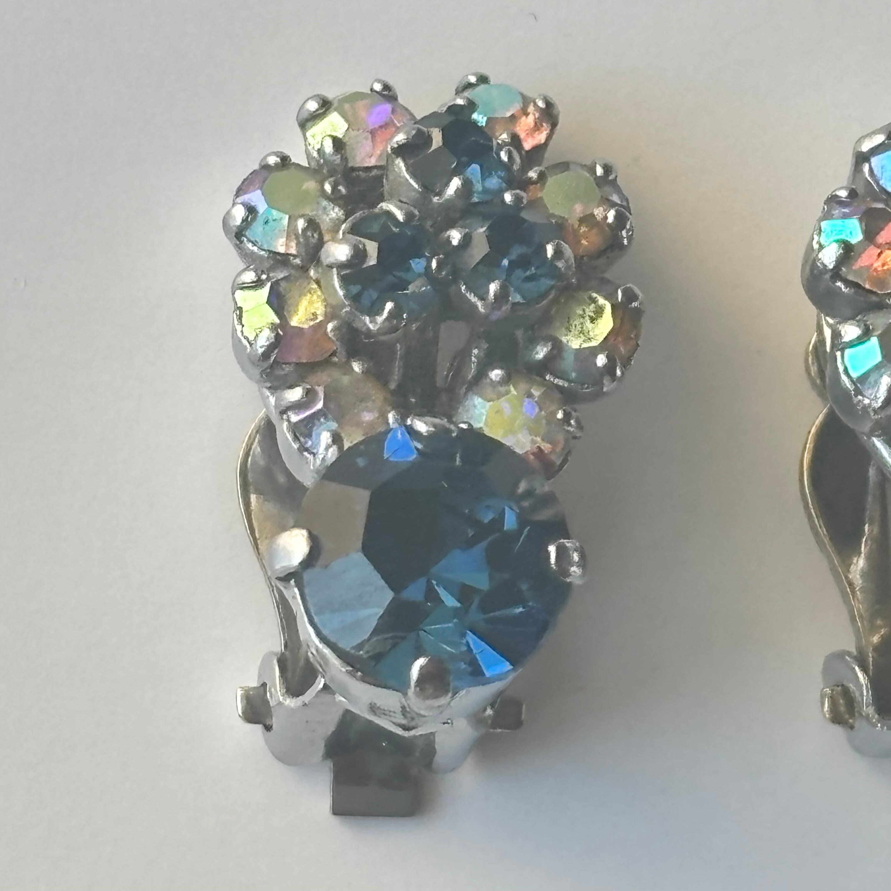 オーロラ×ブルーのラインストーンのイヤリングです。煌びやかですが小ぶりなので普段使いもしやすいですよ。