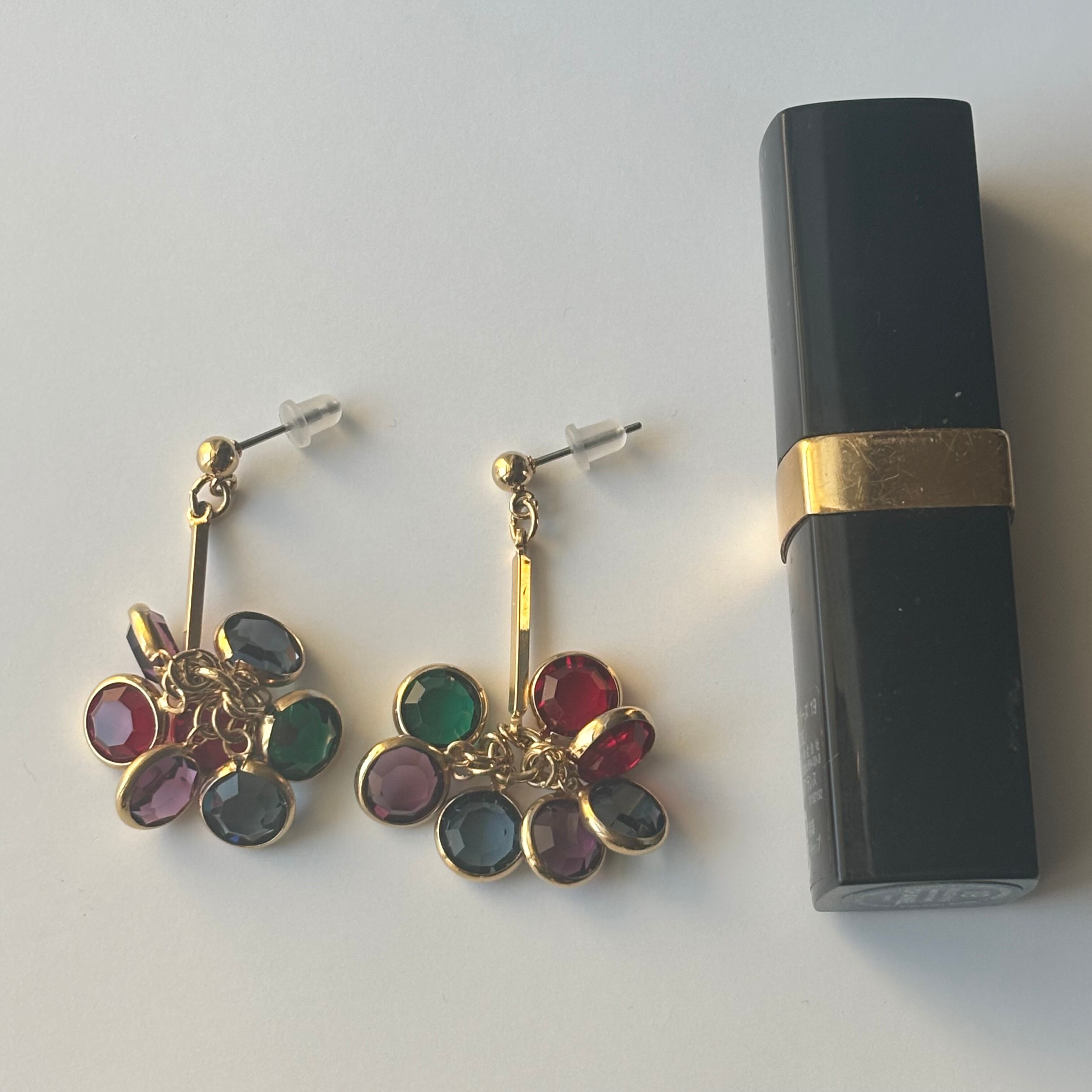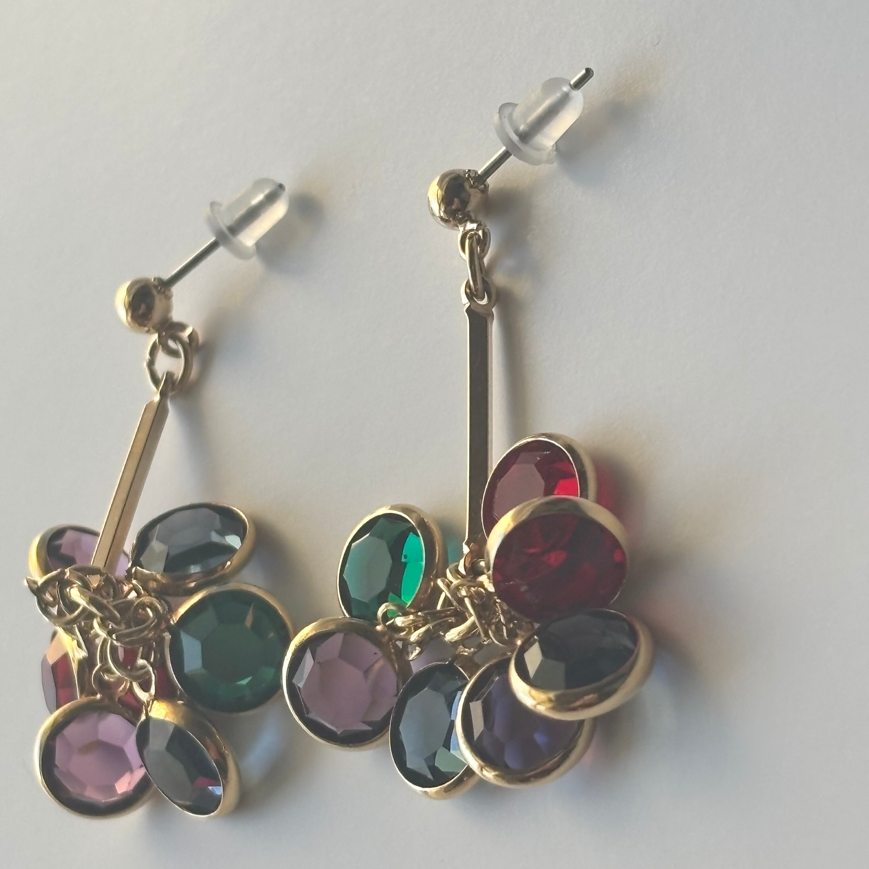 マルチカラーのパーツがシャラシャラと揺れるピアスです。光に当たるときらっと光ります。コーディネートのアクセントにもおすすめです。