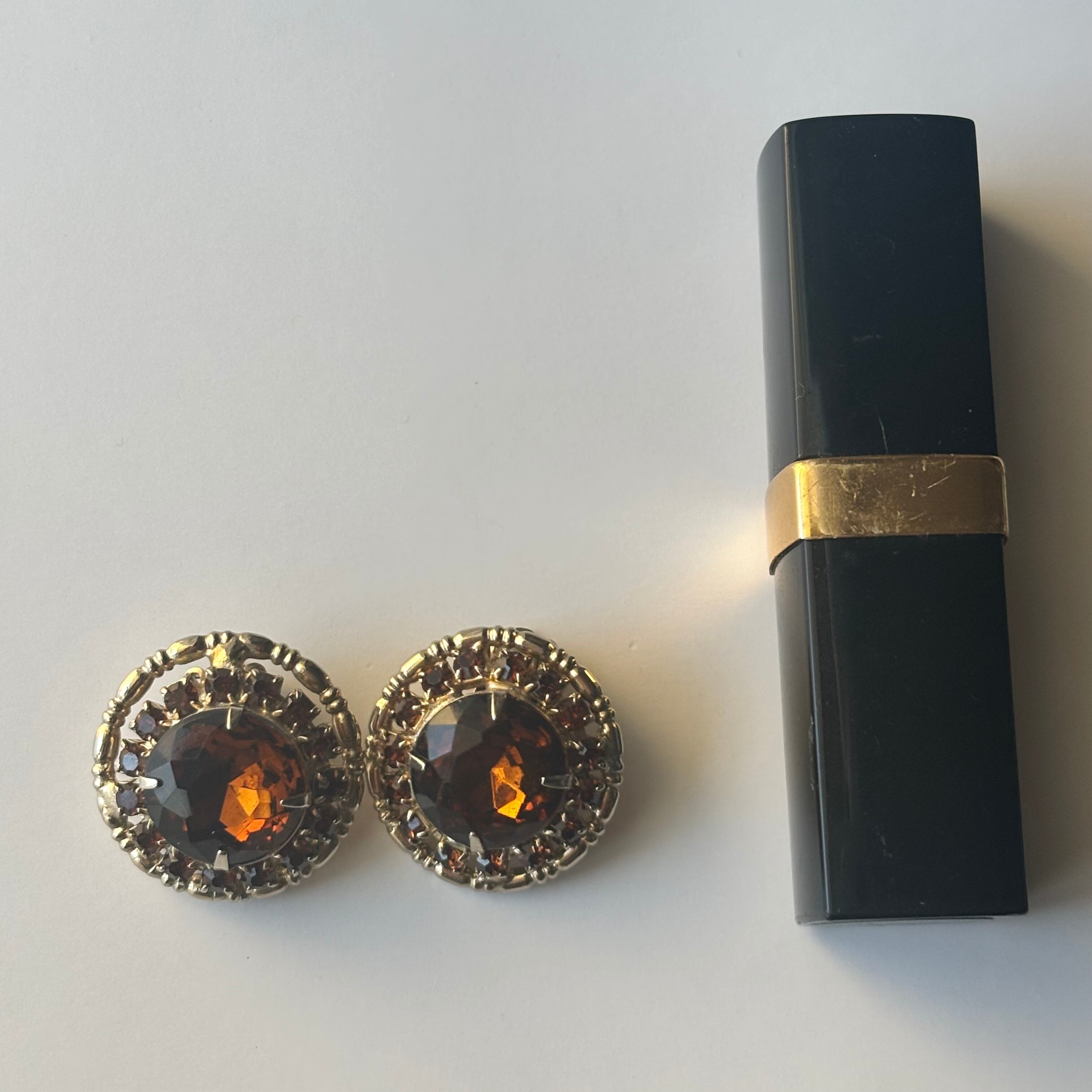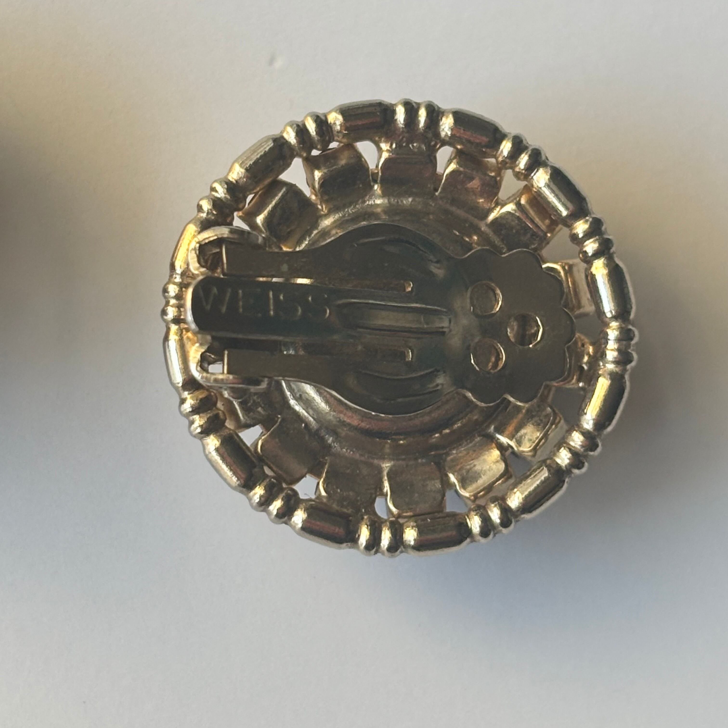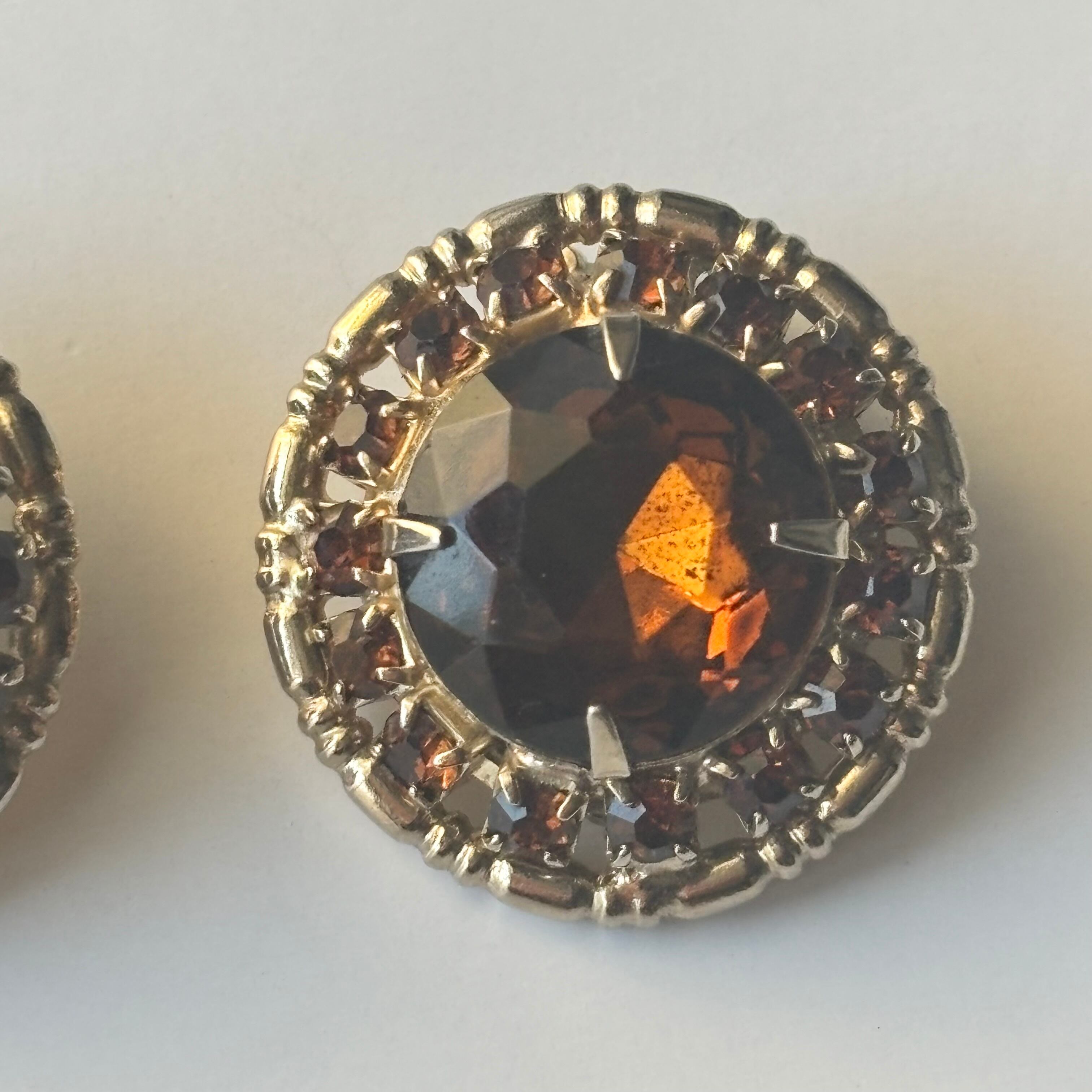 アメリカのコスチュームジュエリーブランド”WEISS“のイヤリングです。WEISSといえばハイクオリティなビジューをふんだんに使ったジュエリーが有名ですが、今回はアンバーカラーのイヤリングをご紹介します。落ち着きあるアンバーカラーとゴールドフレームのデザインです。
