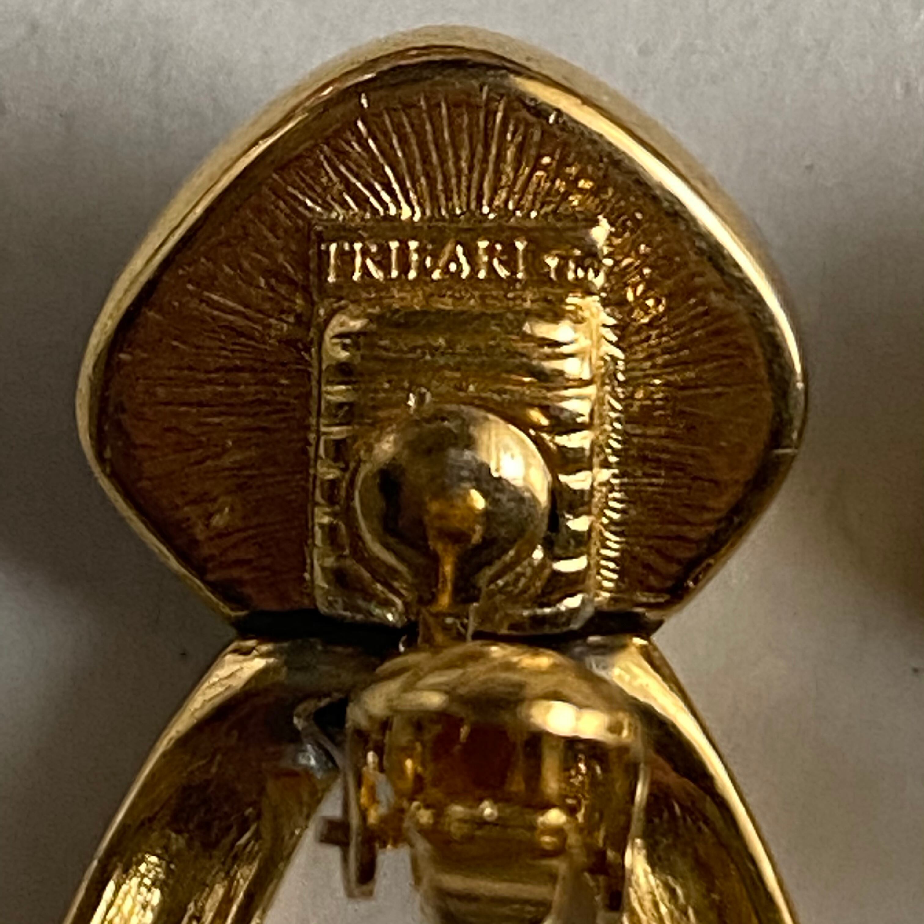 トリファリは1918年にグスタボ・トリファリ氏とレオ・クラウスマン氏によりTrifari and Krussman Companyとして創業、1925年にカール・フィシェル氏が加わり会社名をTrifari Krussman and Fishel に変更しました。1930年から68年までは高級有名宝飾店ヴァン・クリーフやカルティエに在籍していたアルフレッド・フィリップ氏がヘッドデザイナーとして活躍、クオリティーの高い作品を生み出し、アメリカでも有数のメーカーに成長しました。優美な曲線を多用した上品でエレガントなデザインは現在でも変わらない魅力です。