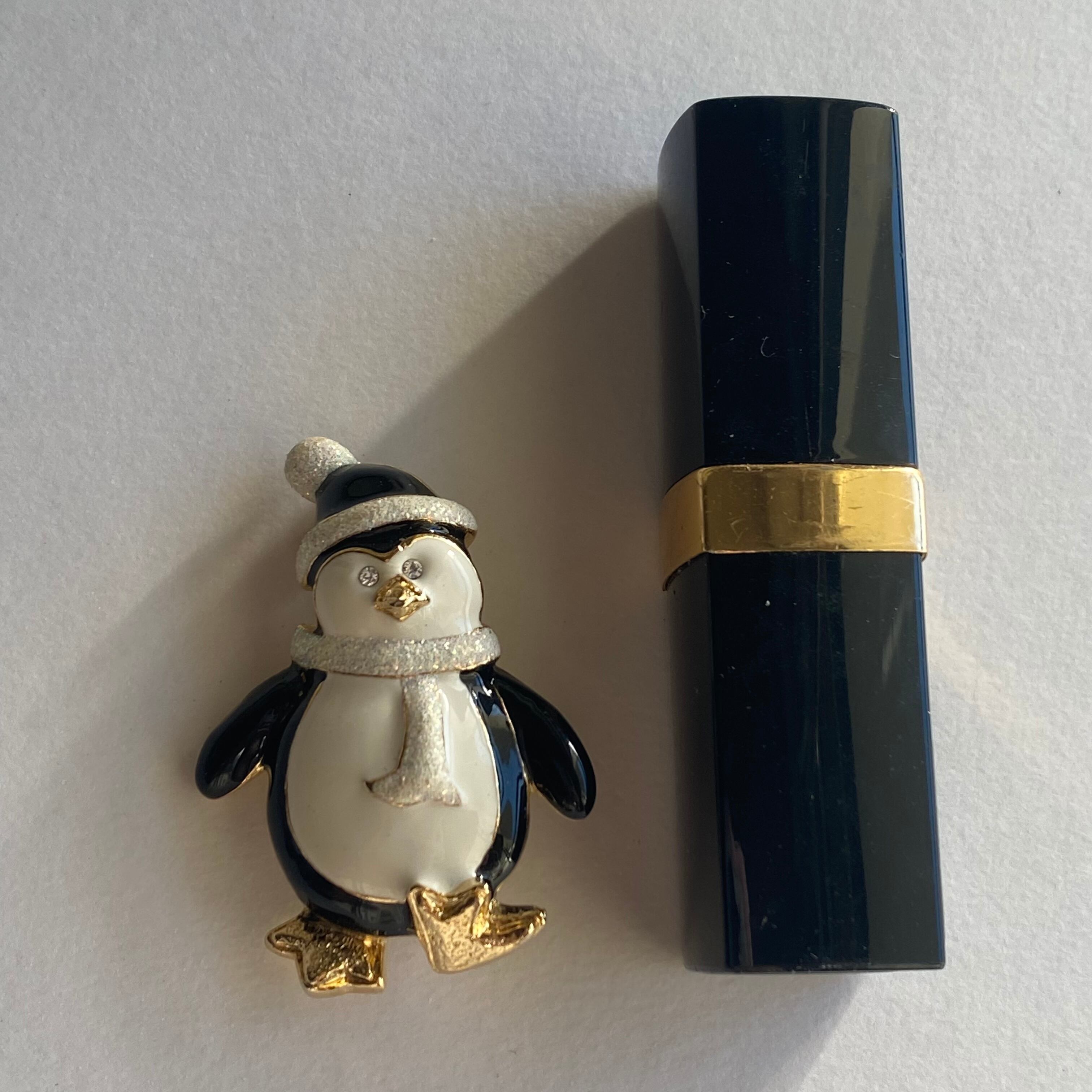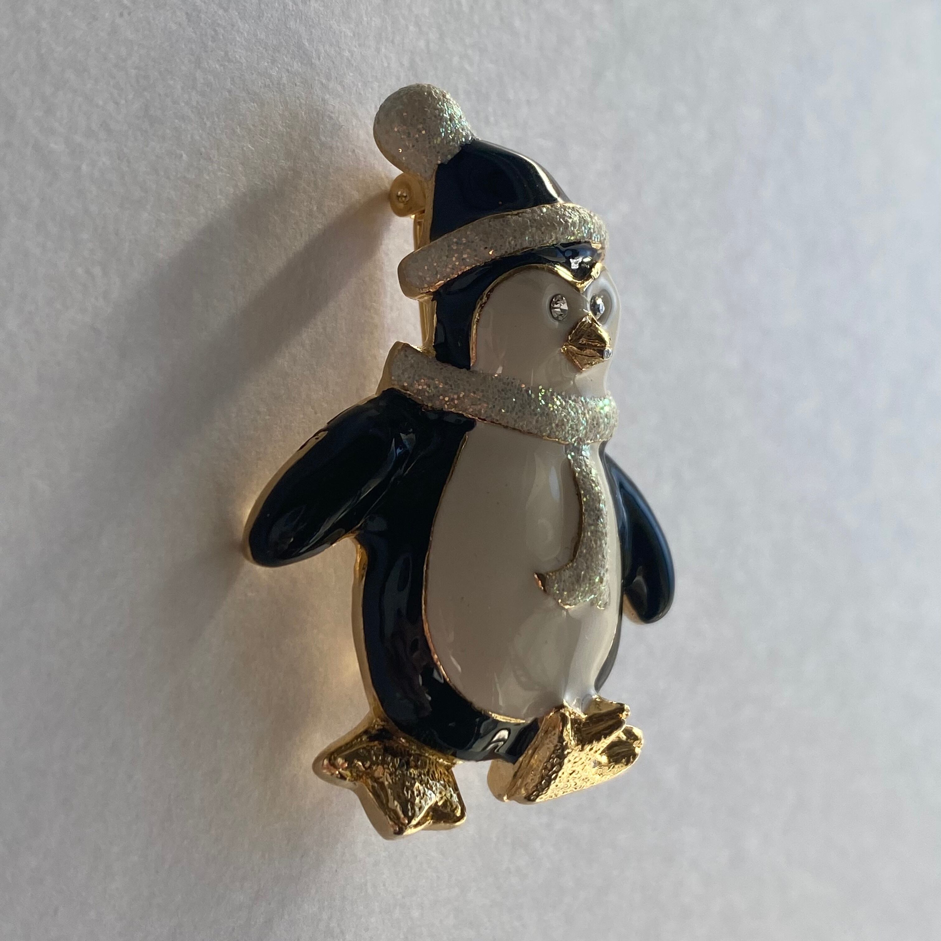 冬の寒さを感じつつも、なんとも言えない愛らしい表情に心温まるペンギンのブローチです。今にもこちらに歩いてきそうな足元も魅力的です。