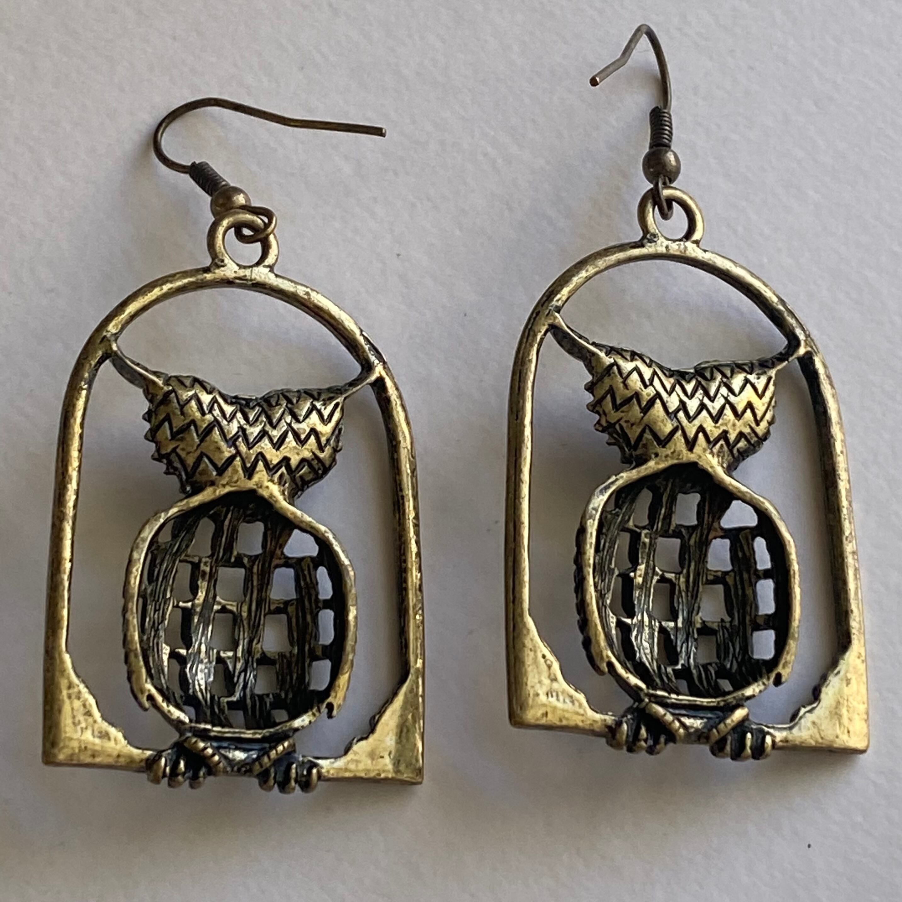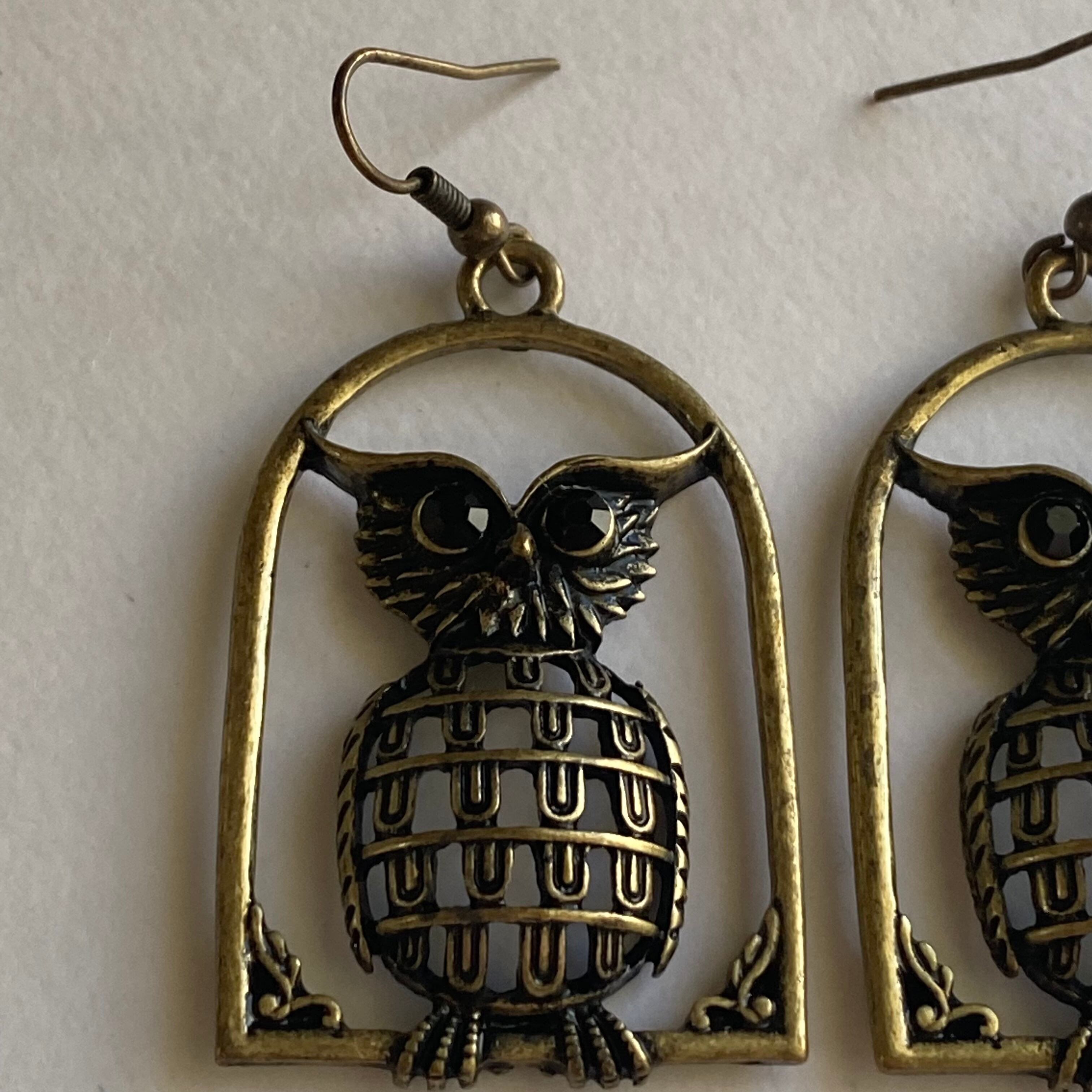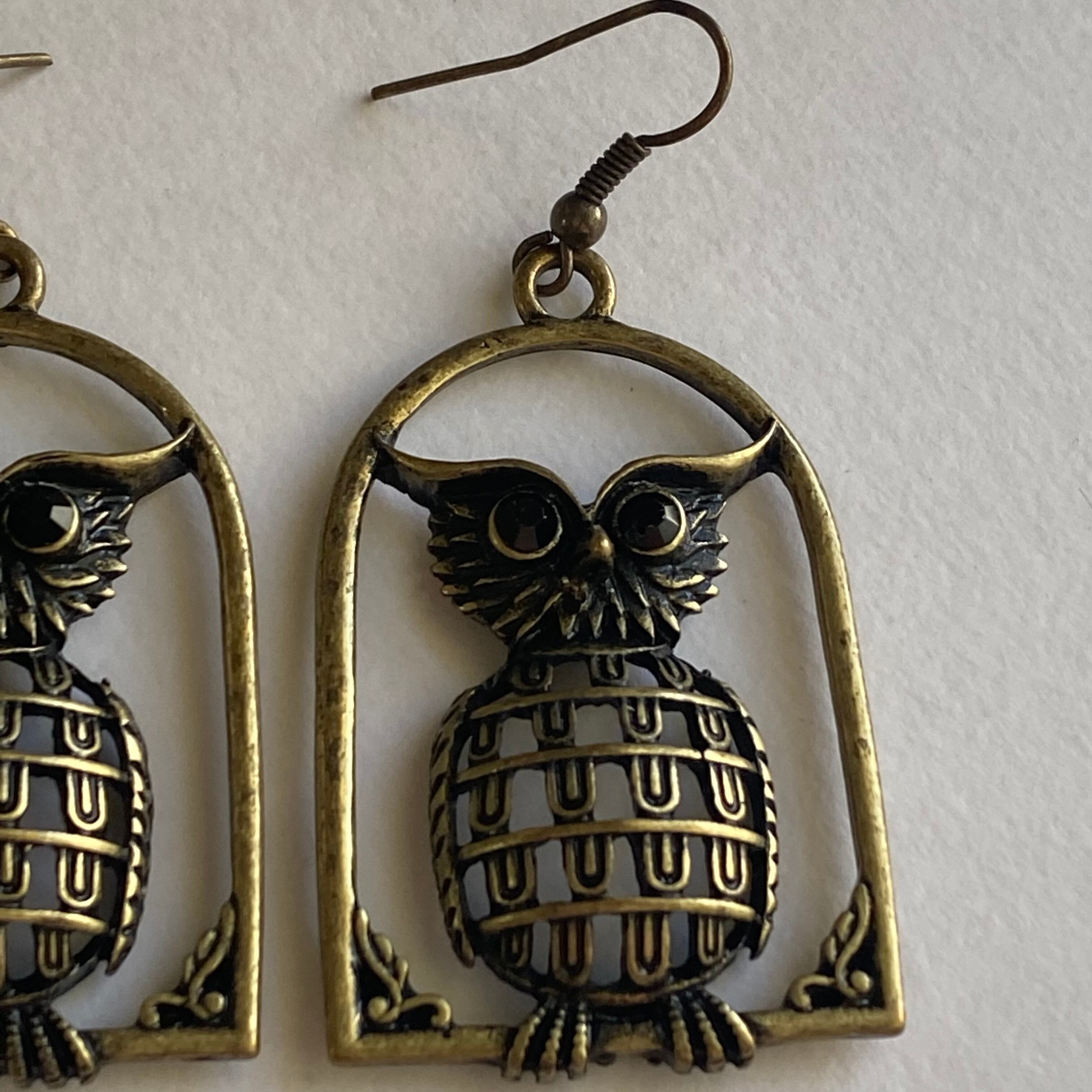 窓の縁に止まっているようなフクロウのピアスです。