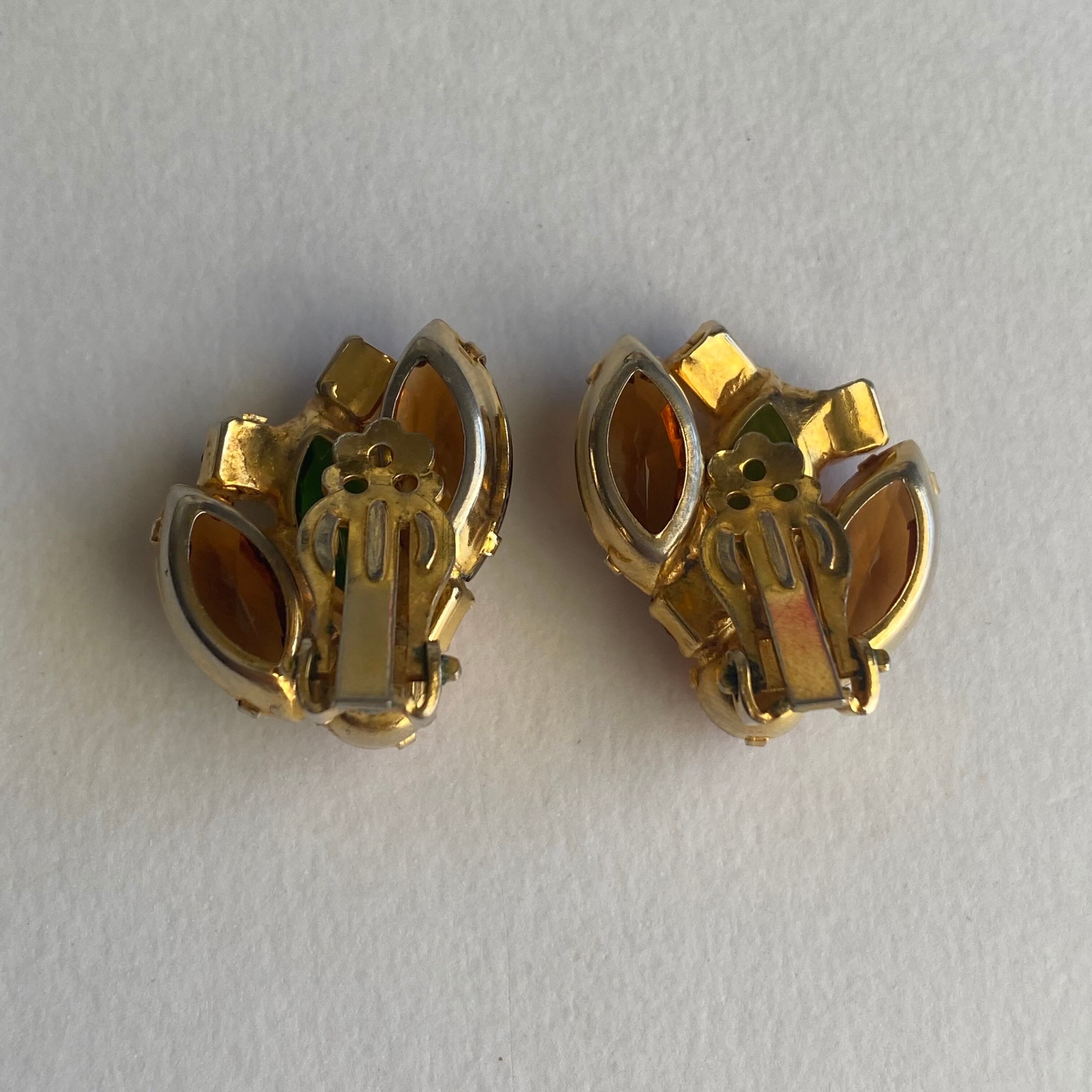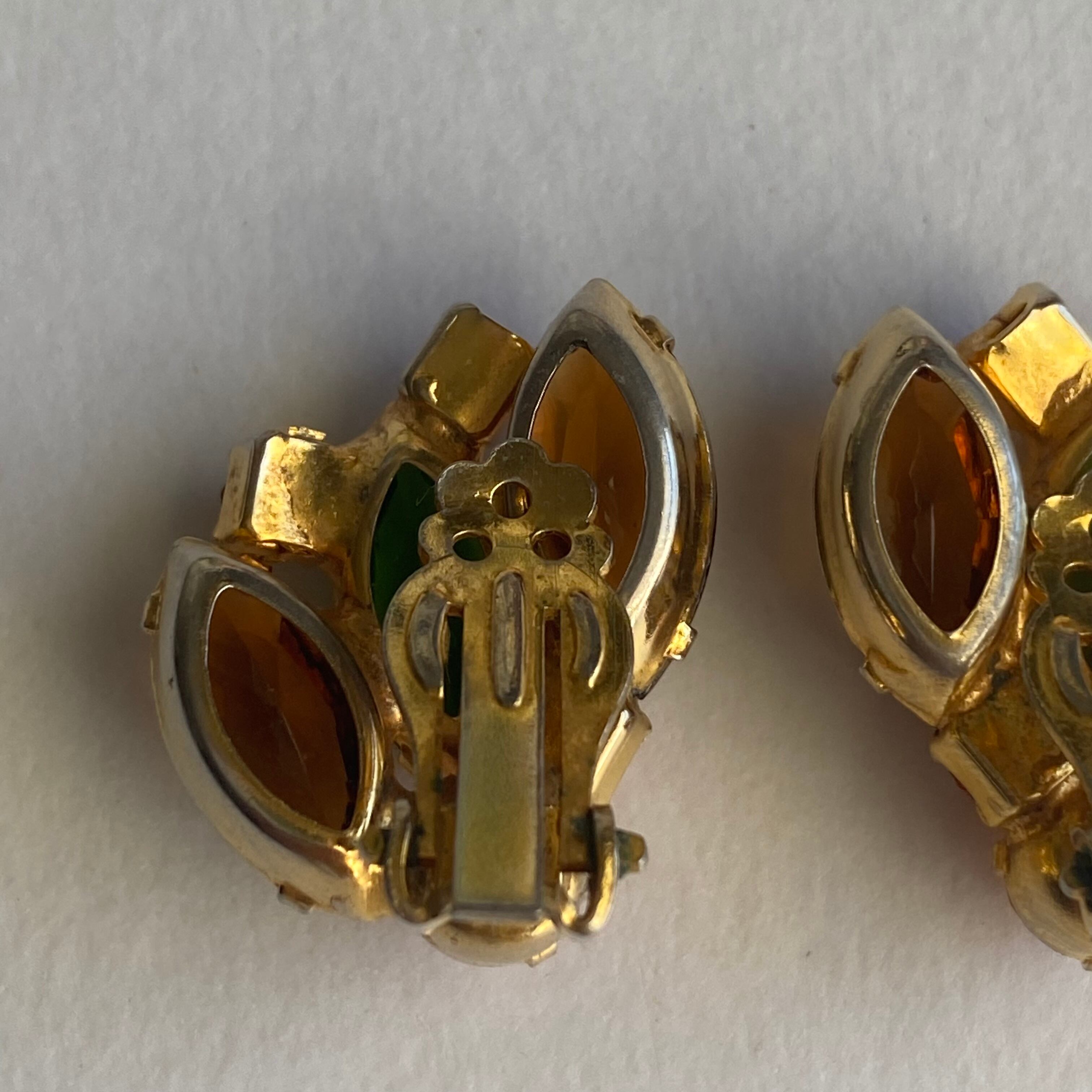 カラフルなラインストーンが散りばめらたイヤリングです。深みのあるカラーが秋色を楽しめる逸品です。