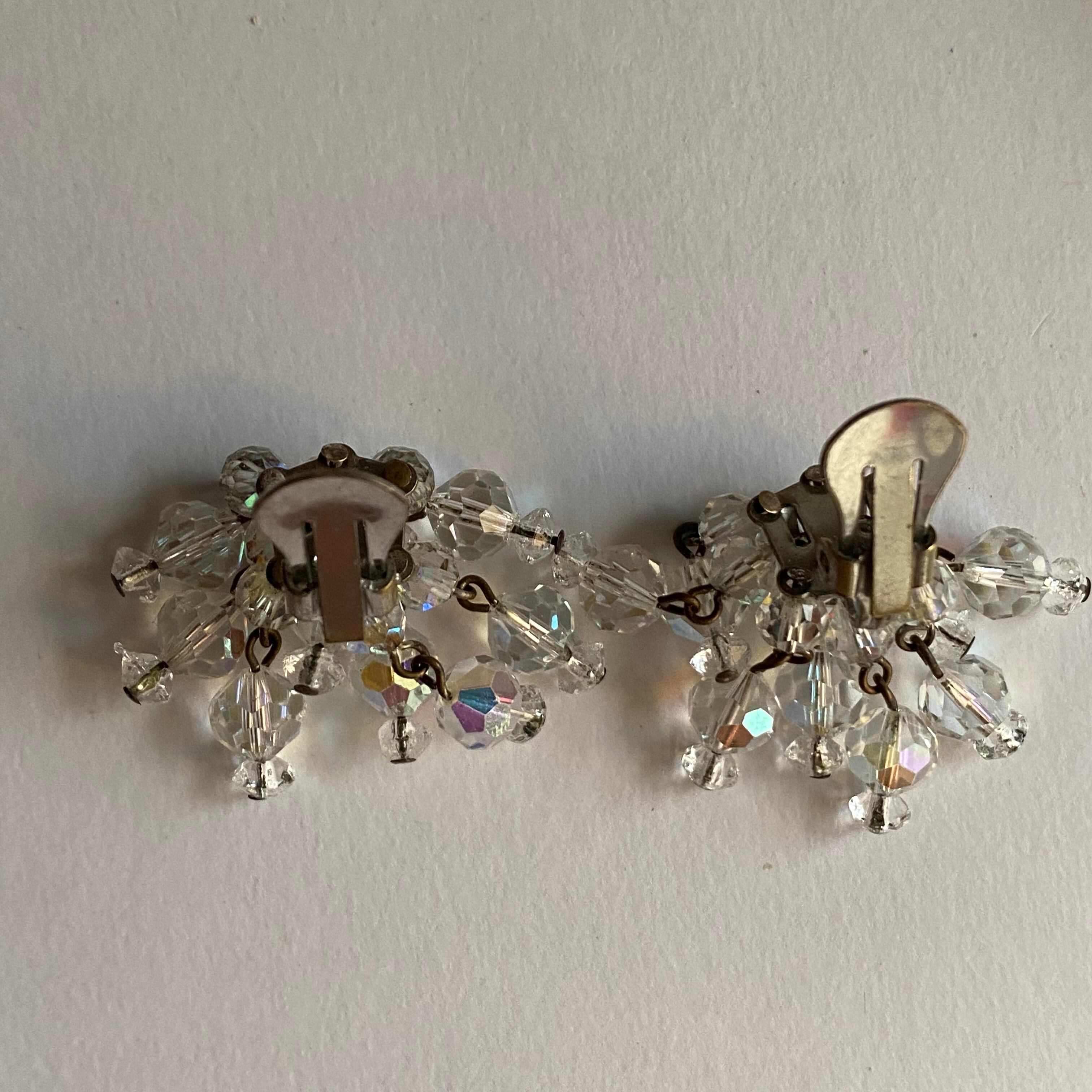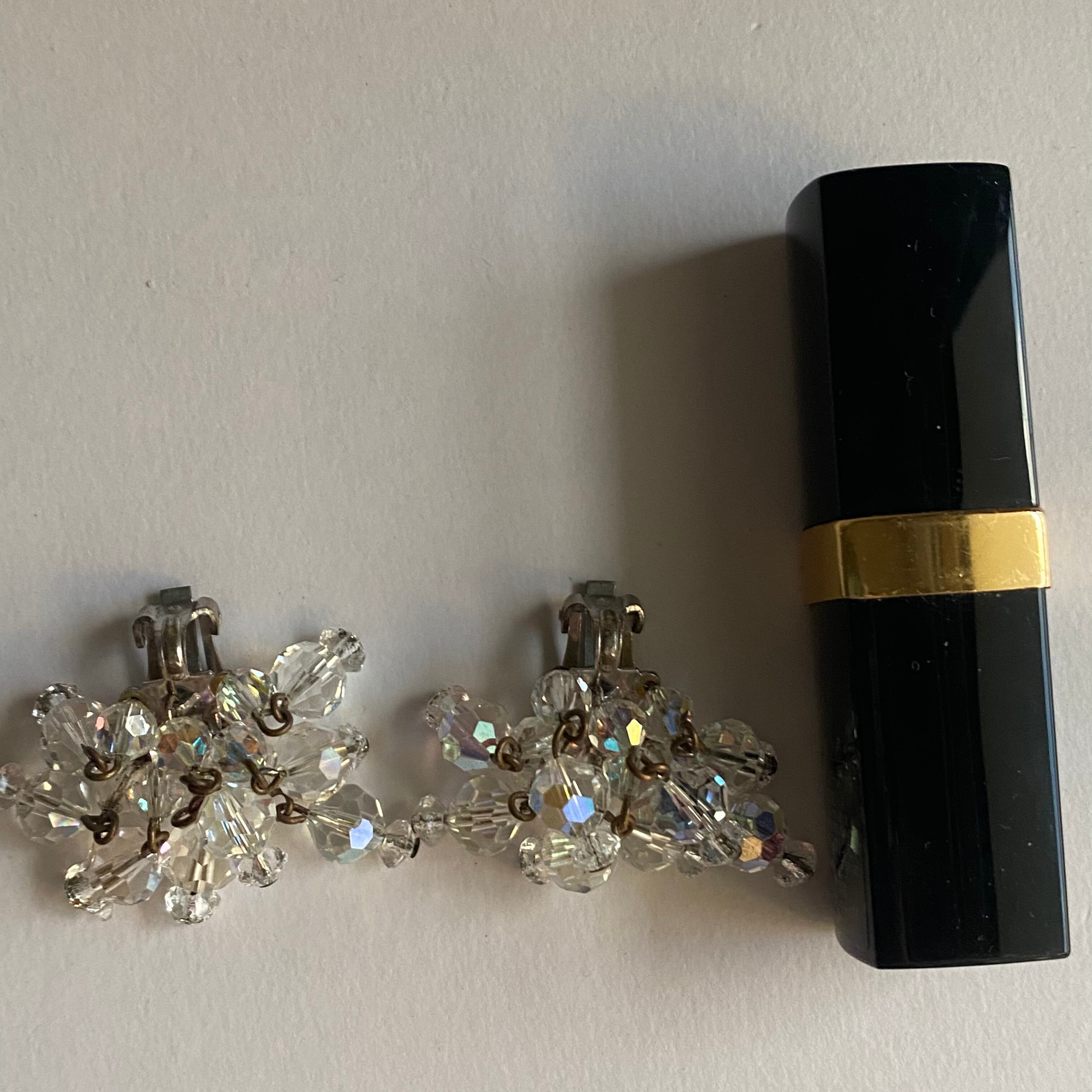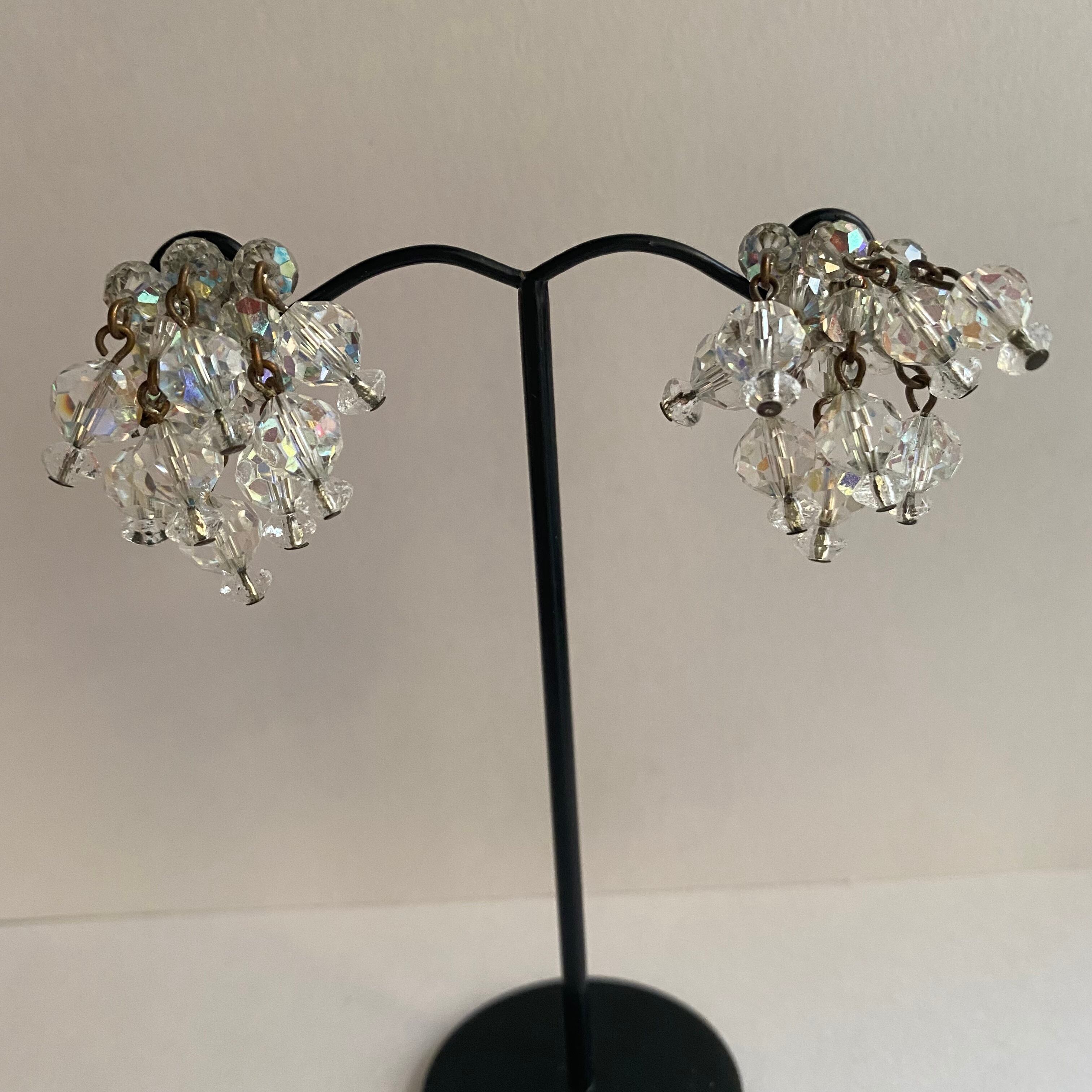 オーロラカットにクリスタルビーズがじゃらじゃらと揺れるデザインのイヤリングです。