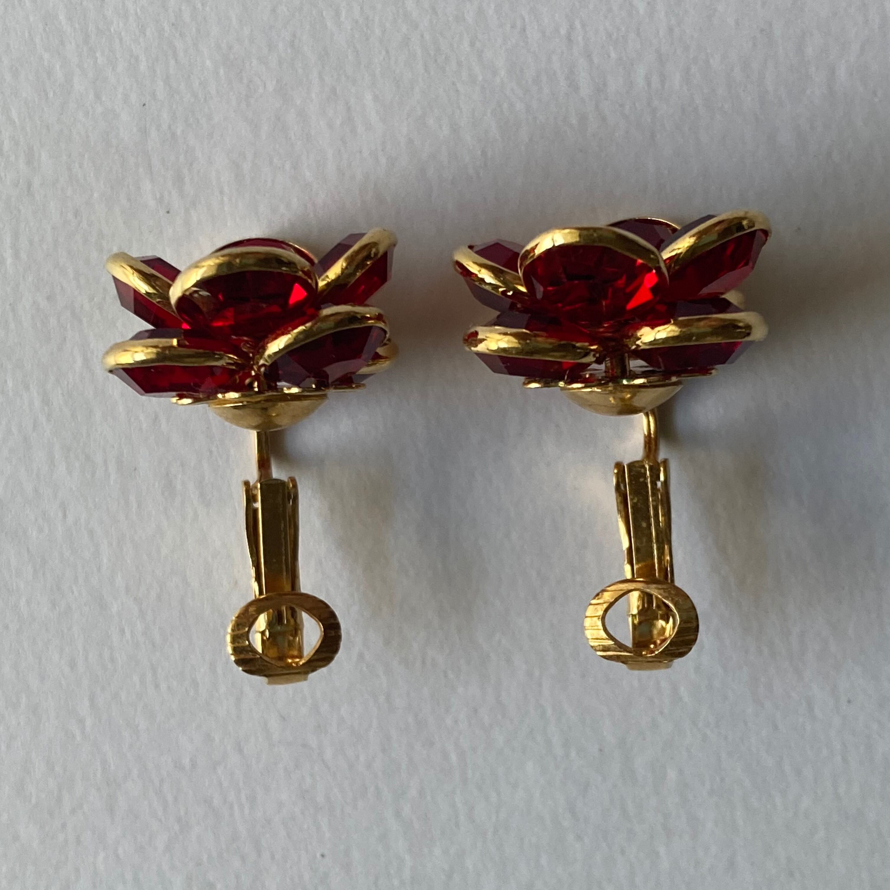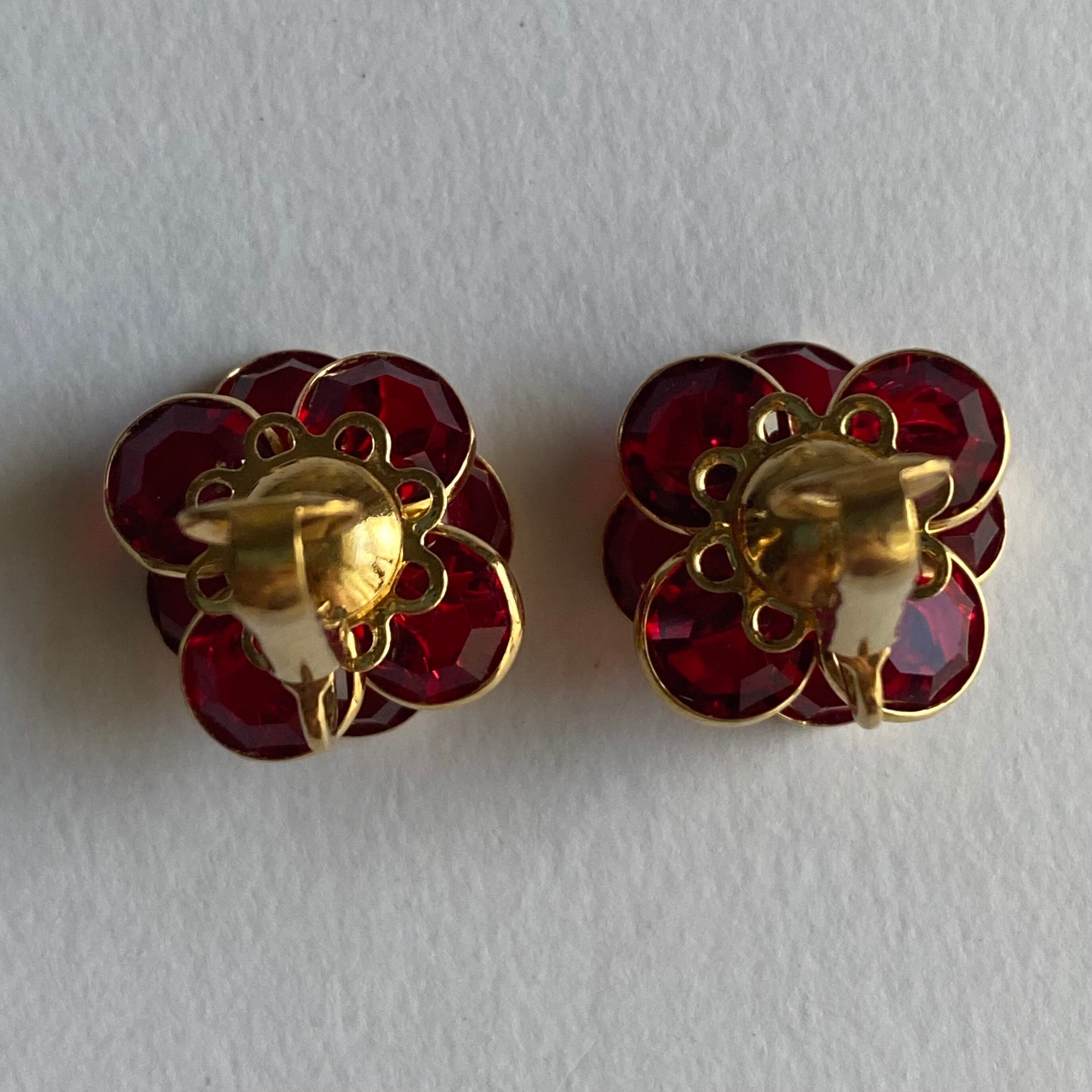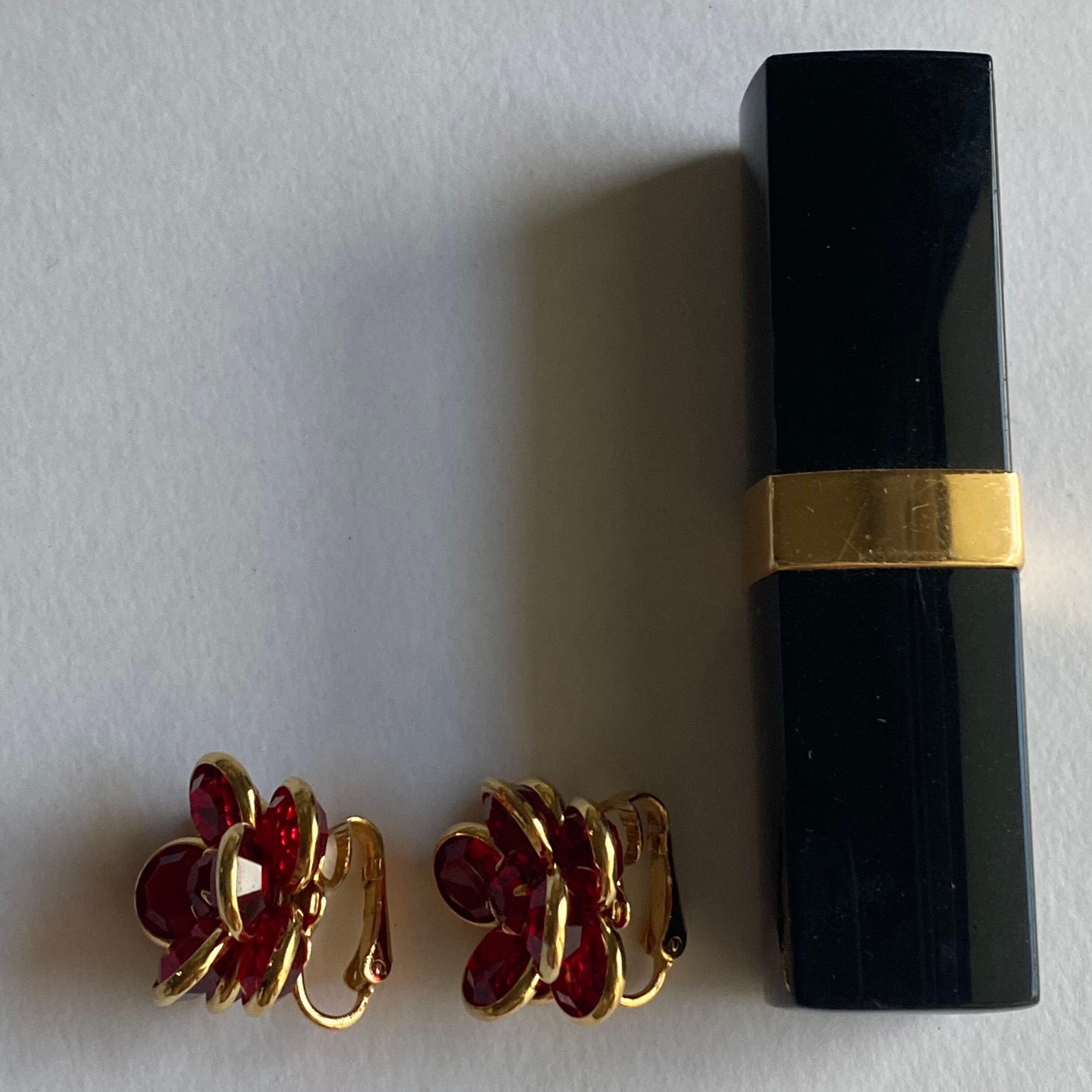 カットが入った花びらの中心に同色の赤いラインストーンが鎮座しているデザインです。