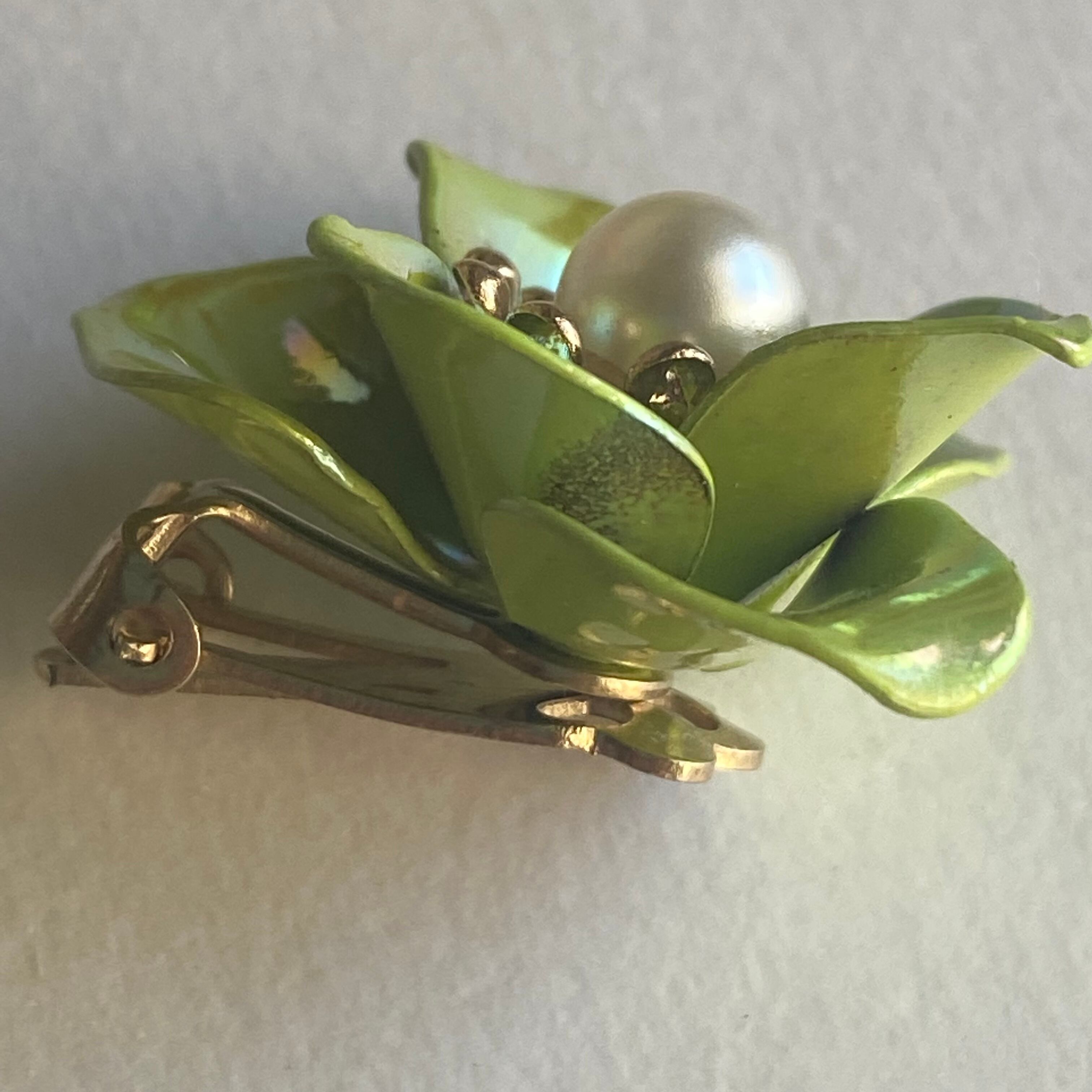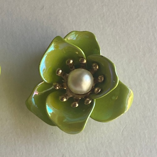 パールとアップルグリーンの色味が非常にマッチしておりcoro独特の世界観がありますね。表面が光の加減によりオーロラのような輝きがあります。