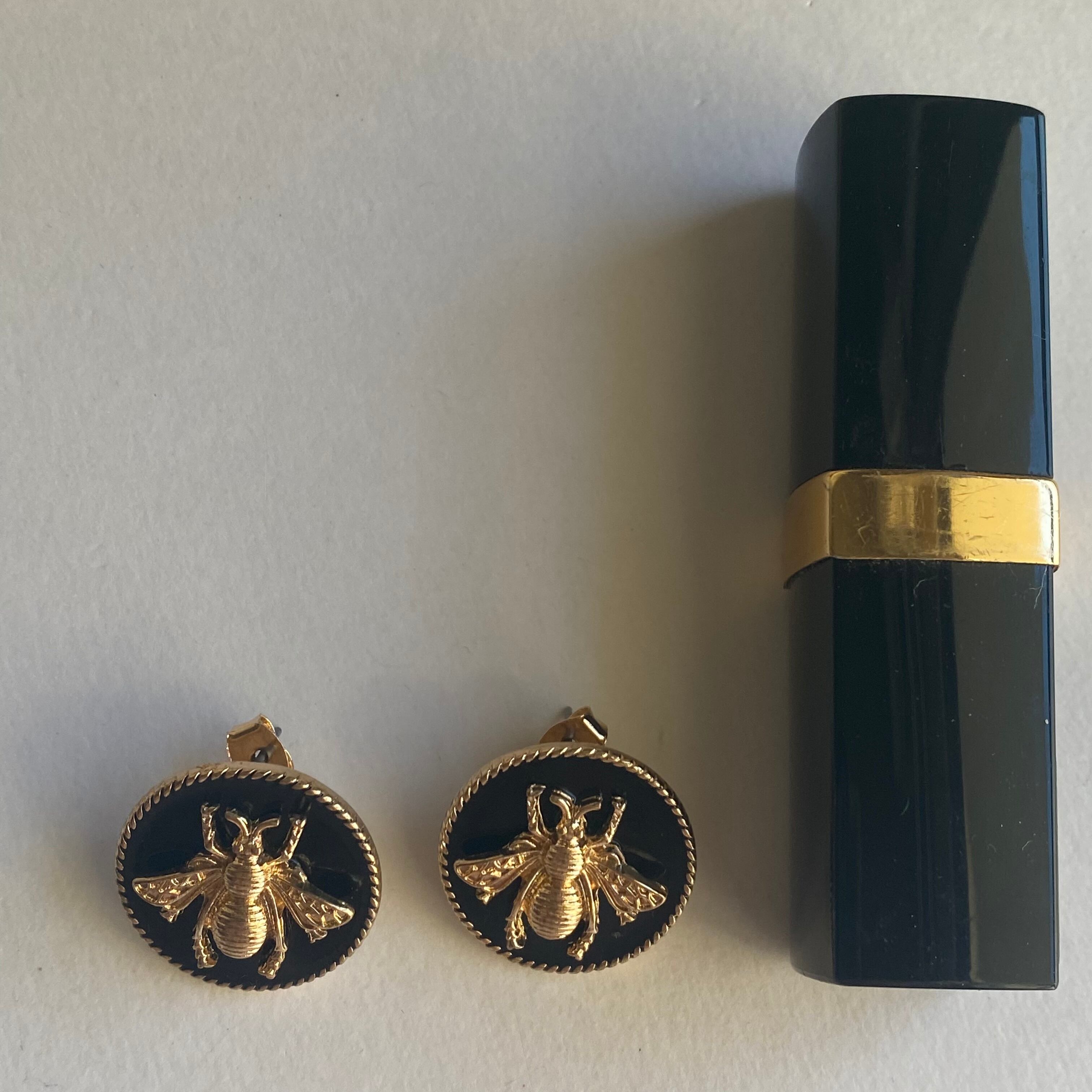ブラックベースエナメルにゴールドメタルの蜂がモチーフのピアスです。