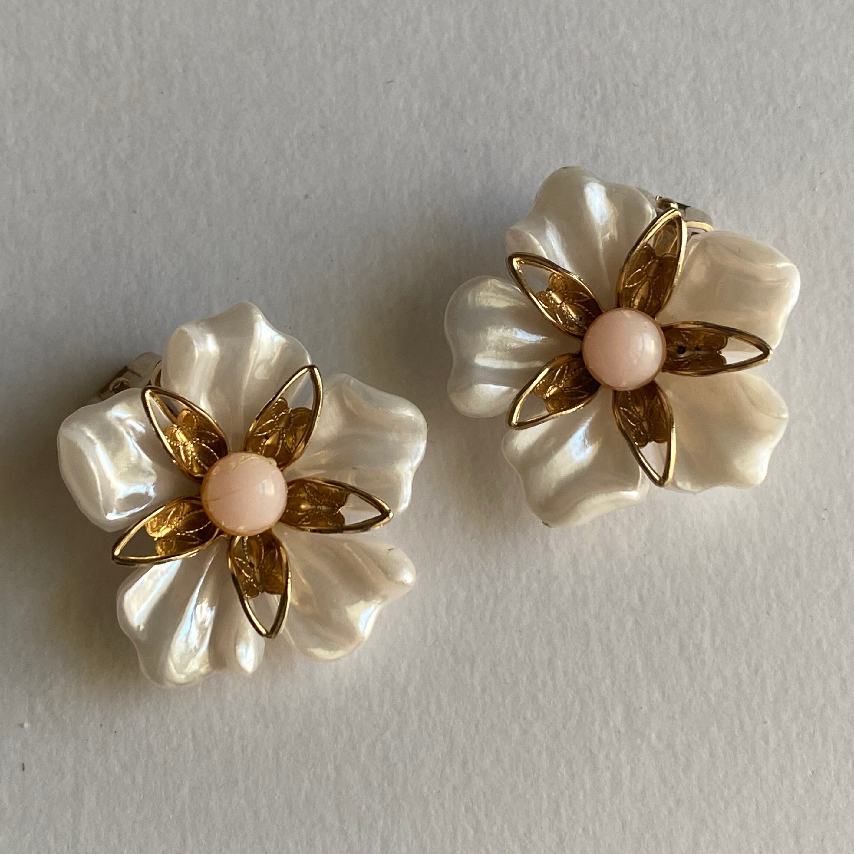 花びらの材質はおそらくプラスチックだと思いますが裏面にはマザーオブパールのような模様が見受けられます。メタル部分も彫りがあり、細部までこだわりを感じる逸品です。