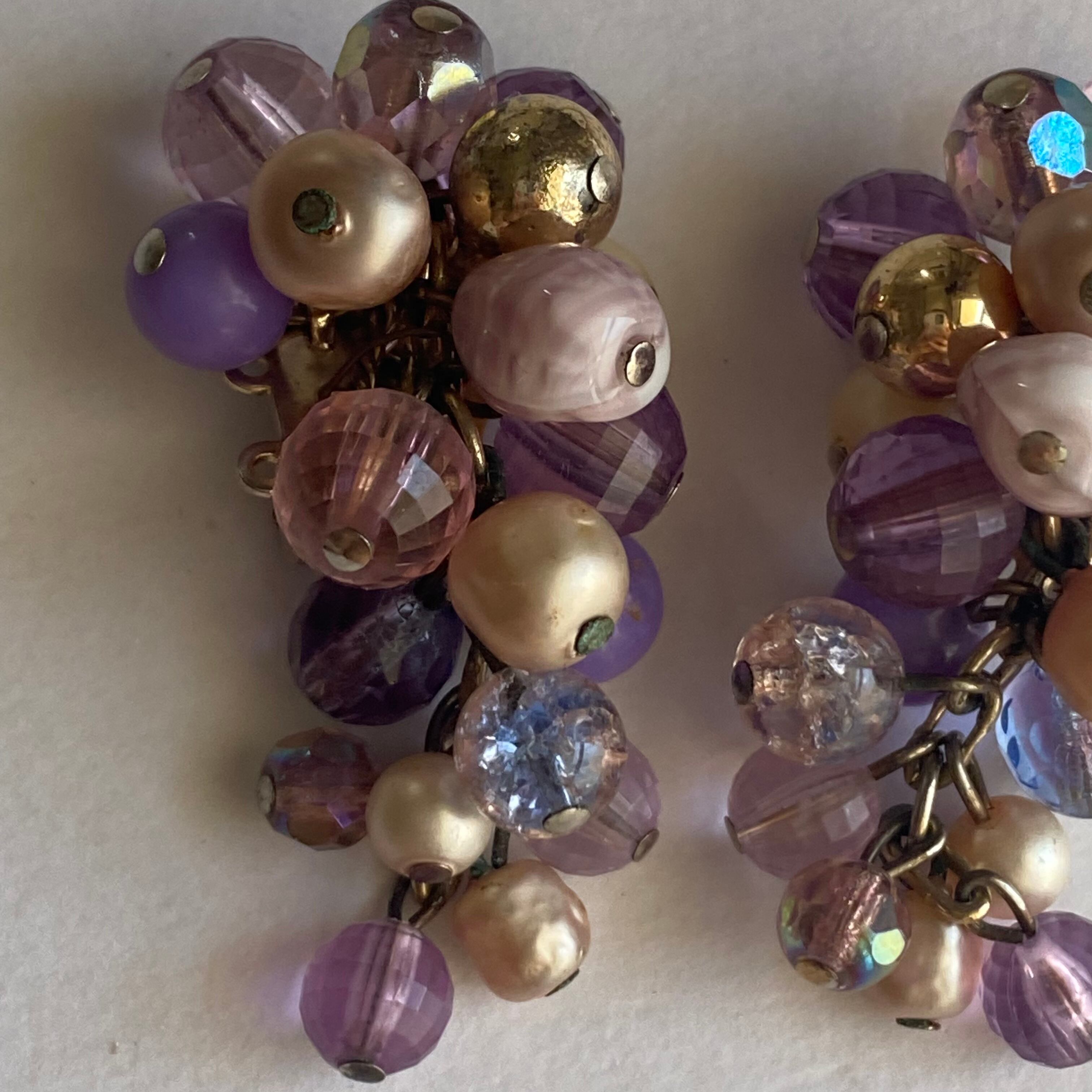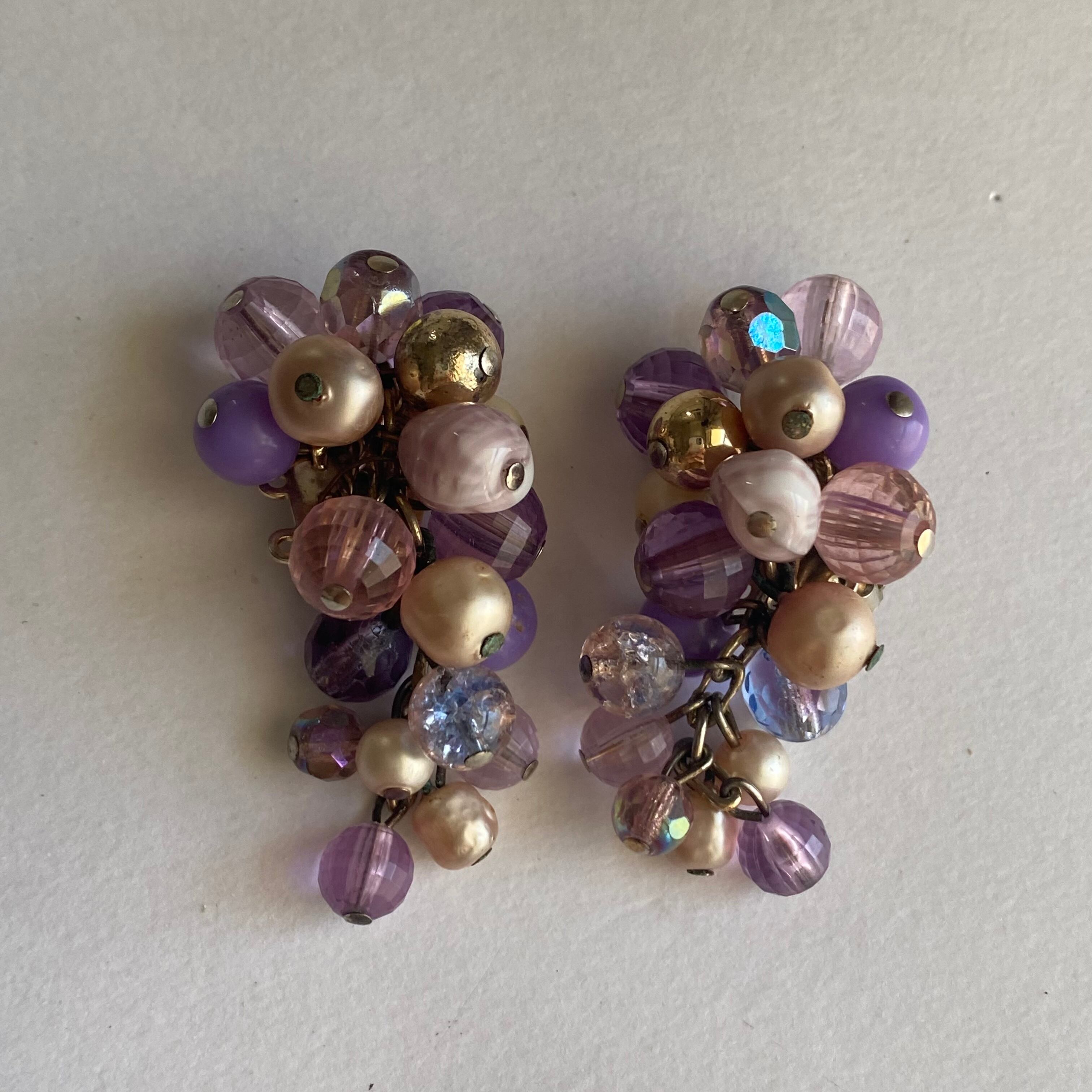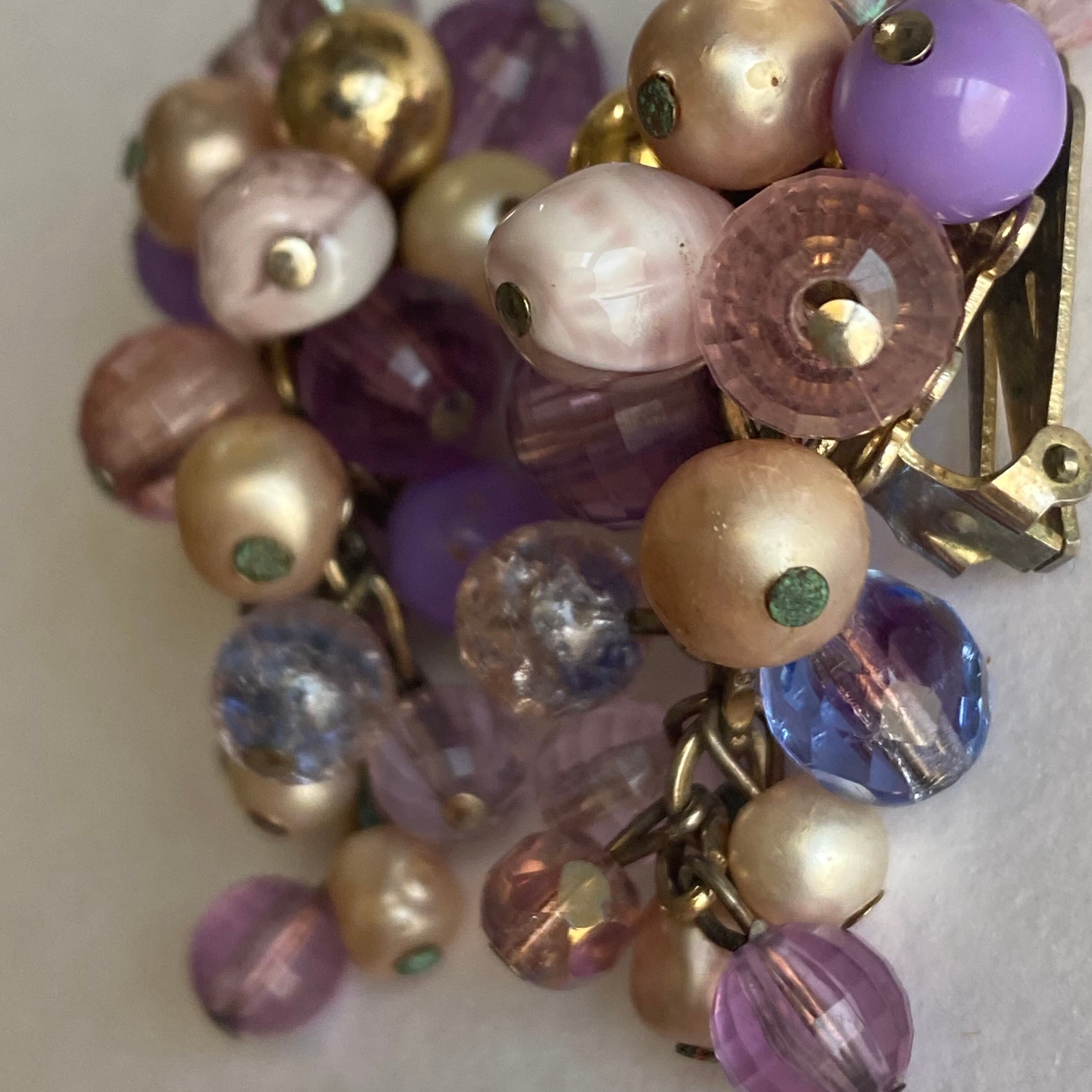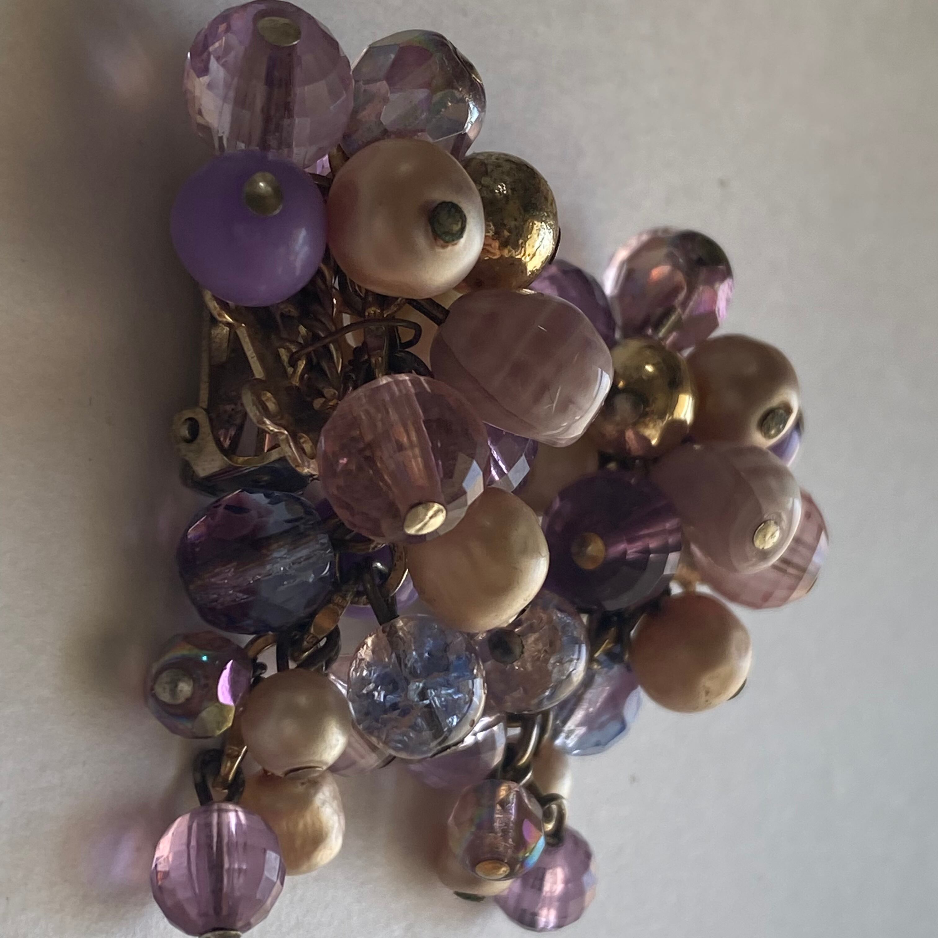 1950-1984年まで営業していたアメリカのコスチュームブランドZENTALLのイヤリングです。パープルやパールのビーズがじゃらじゃらとスイングし、ボリュームたっぷりのデザインです。ロマンチックな装いはもちろんtシャツなどカジュアルな格好でもアクセントになって素敵です。