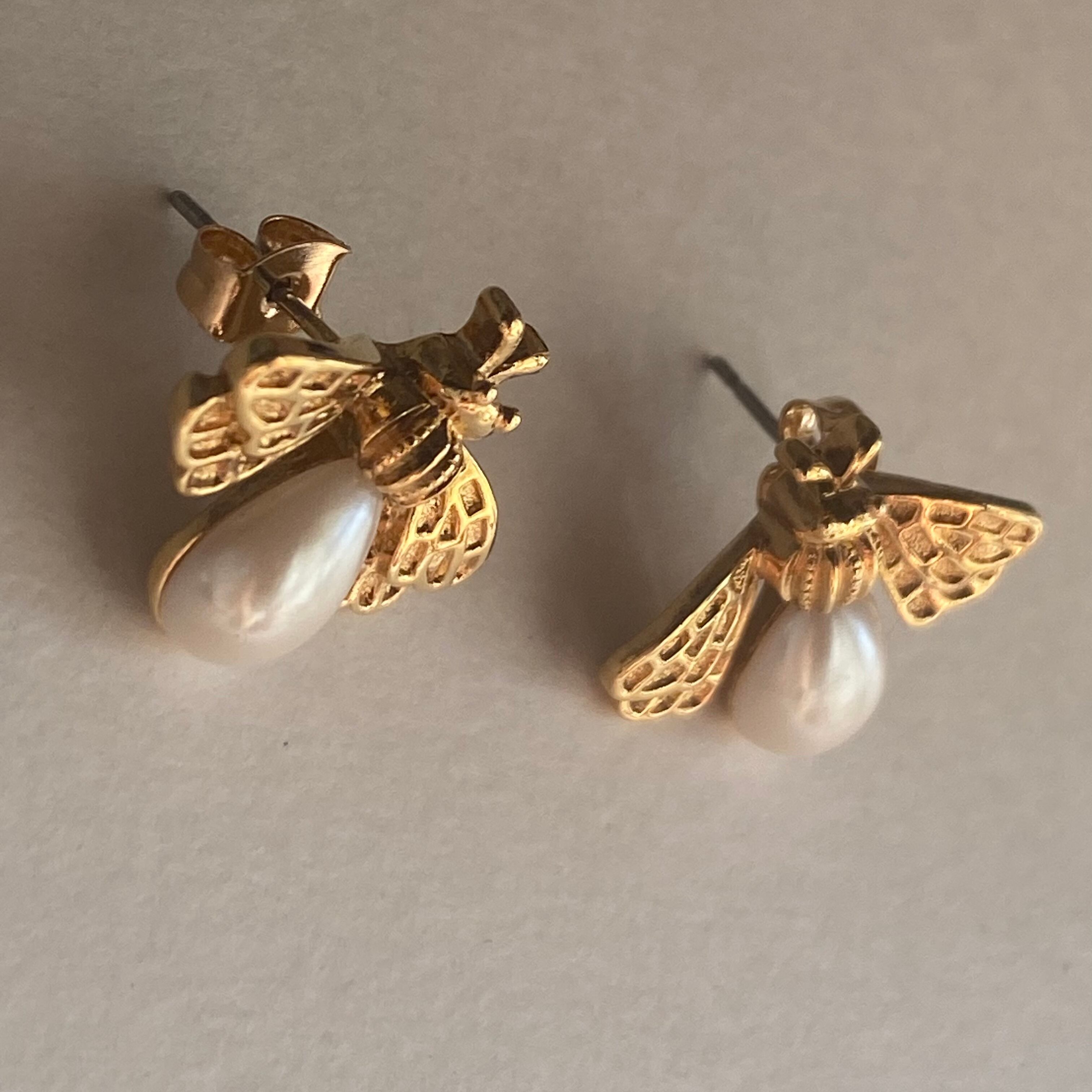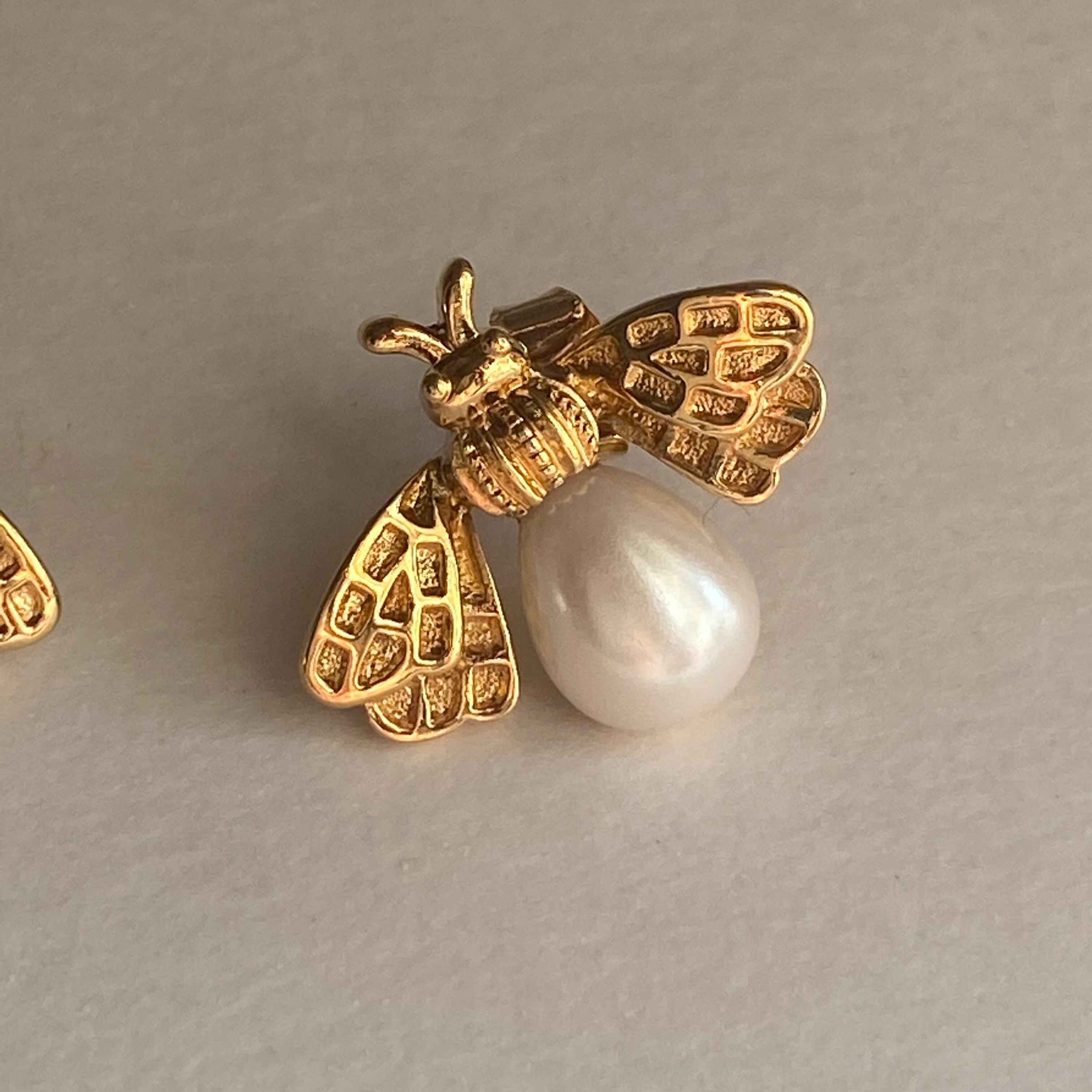 パール×ゴールドトーンメタルで仕立てられたピアスです。パールがぷっくりとしていてコントラストがありますね。