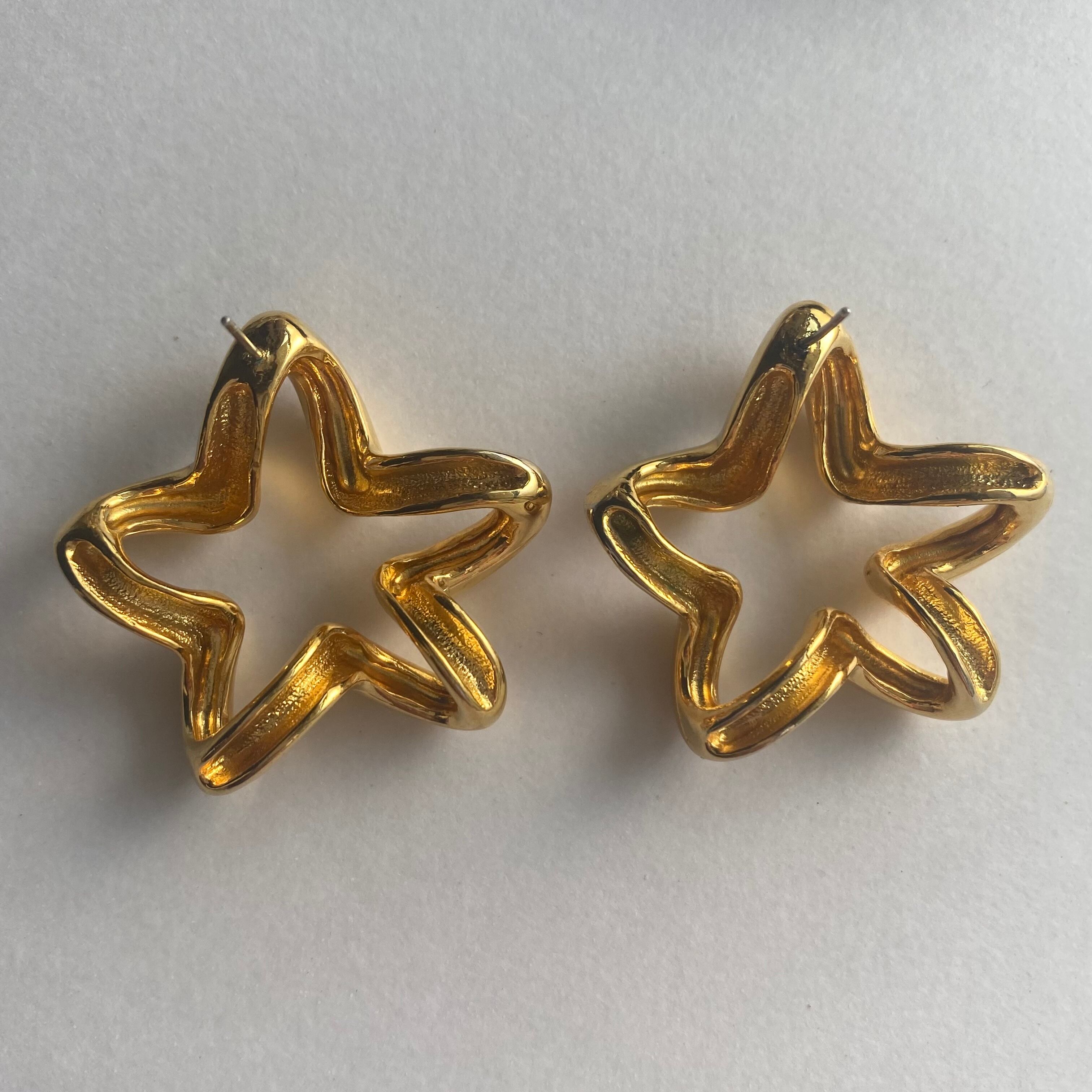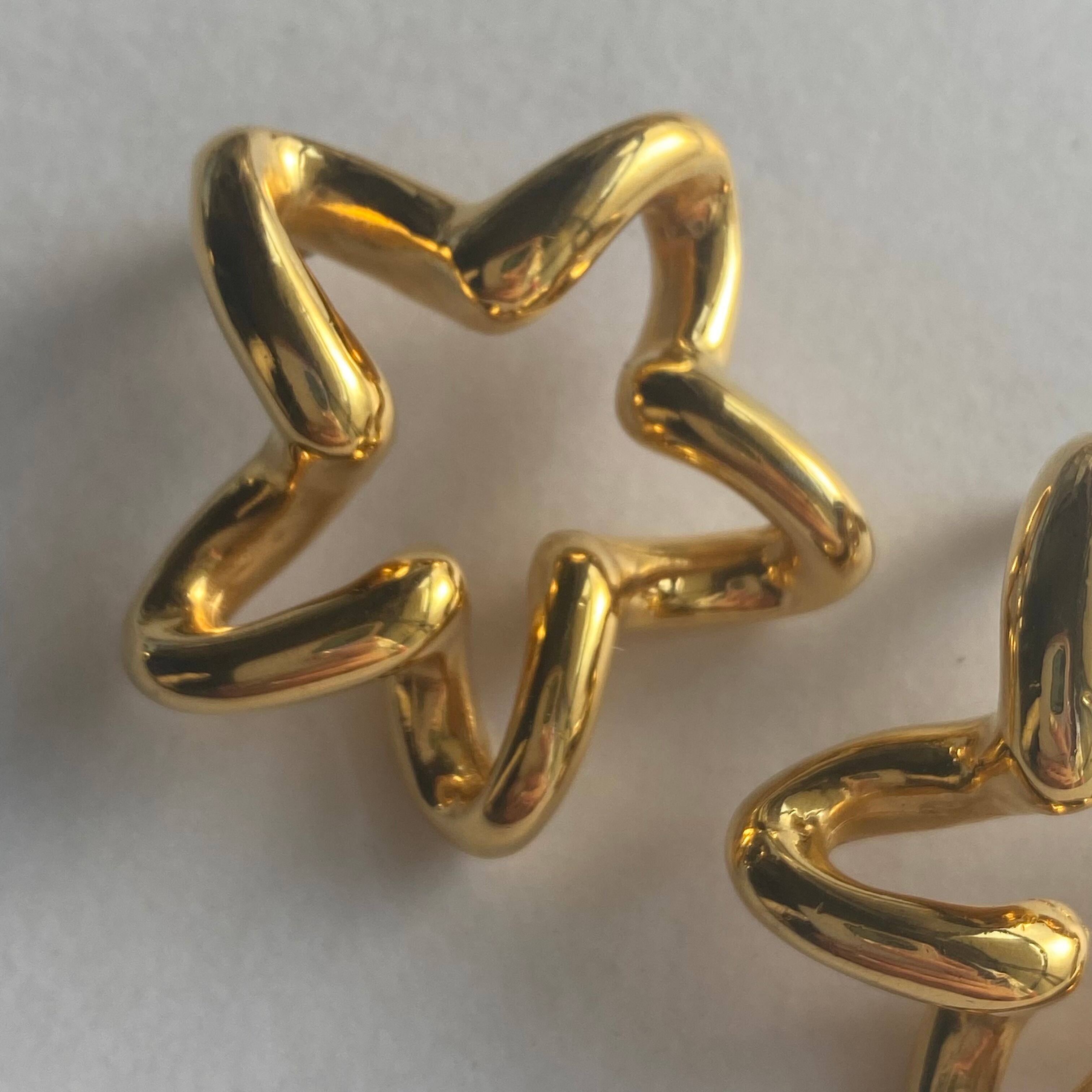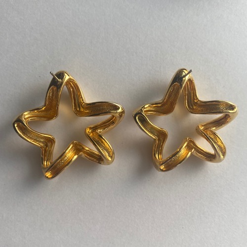 スターモチーフのピアスです。なめらかな曲線で描かれた星形が遊び心があり他にはない逸品です。横から見るとわかりますが凹凸感がありこだわりの詰まったピアスですね。