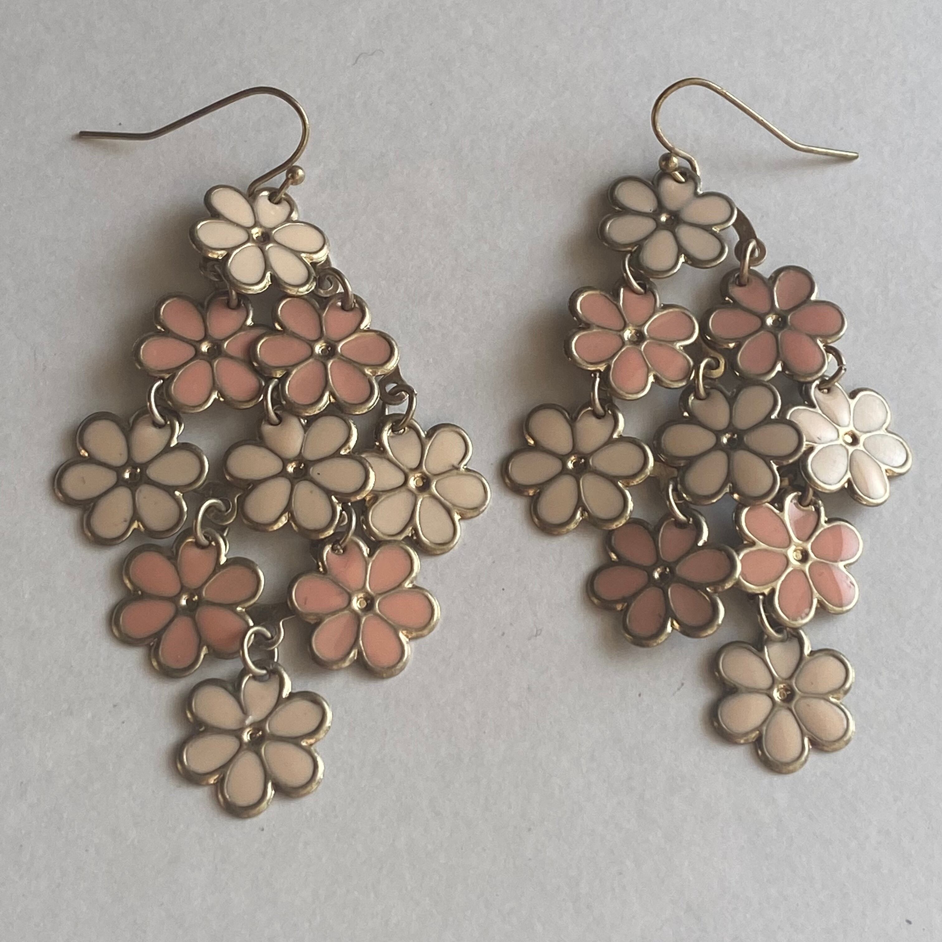 サーモンピンク×シェルピンクのフラワーモチーフのピアスです。ピンク色が印象的ですが落ち着きのある色味なので大人の女性でも付けやすい逸品です。