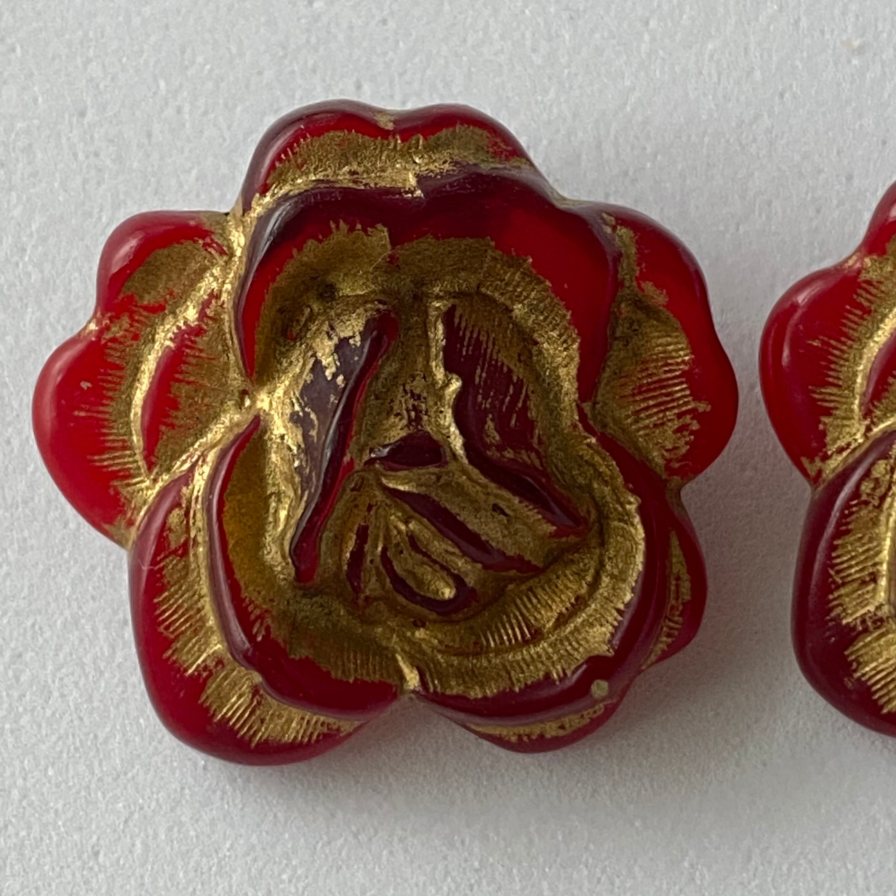 レッド×ゴールドの薔薇モチーフのイヤリングです。