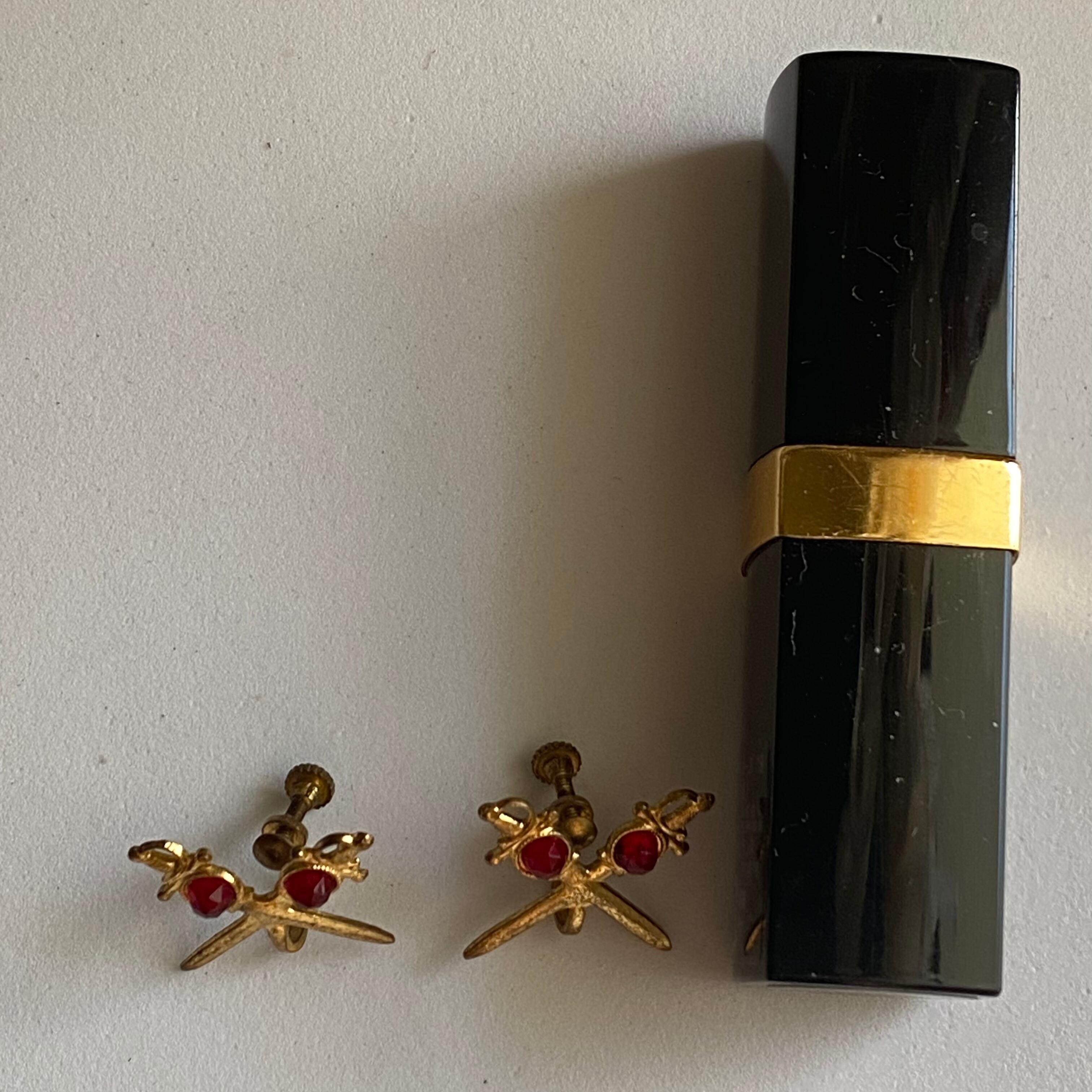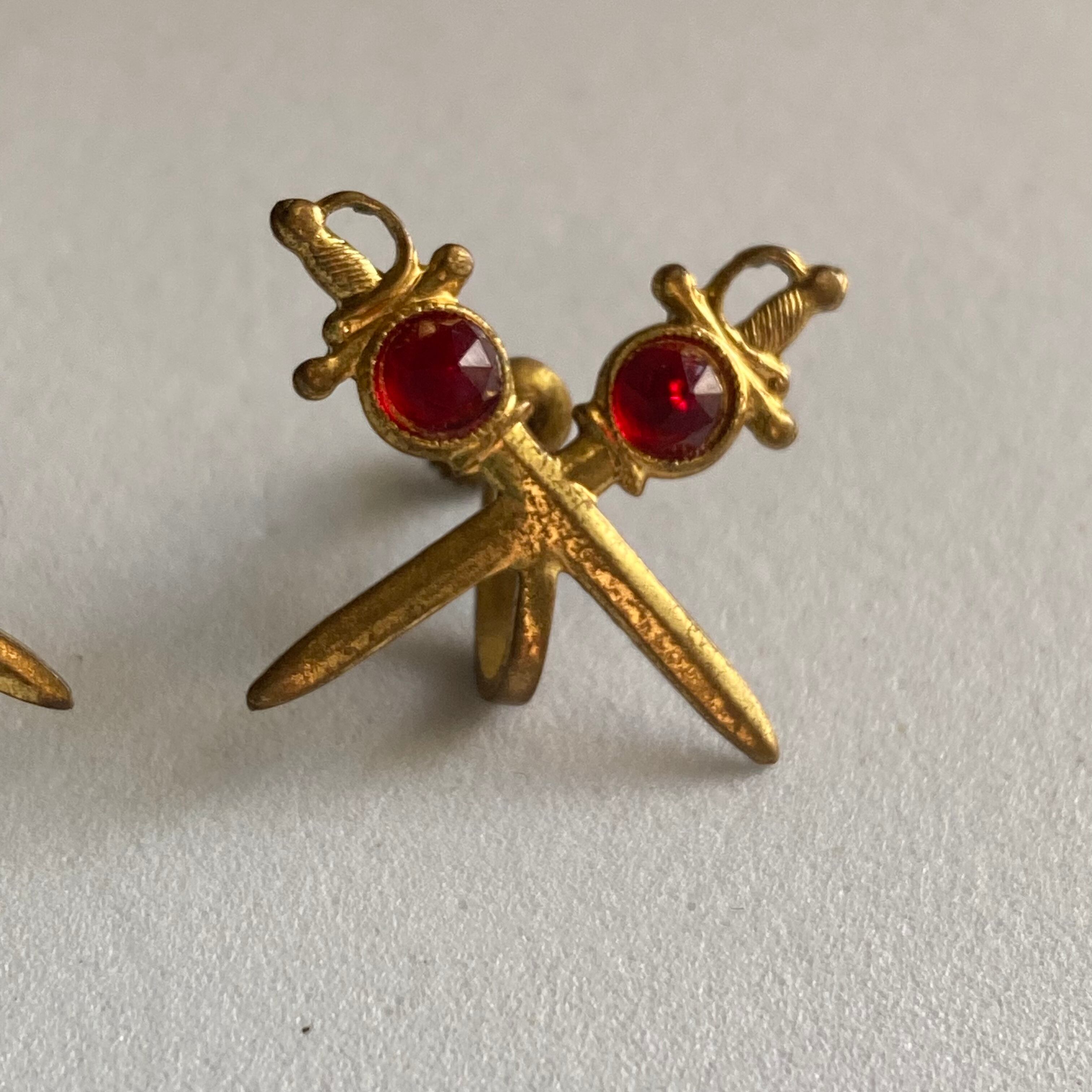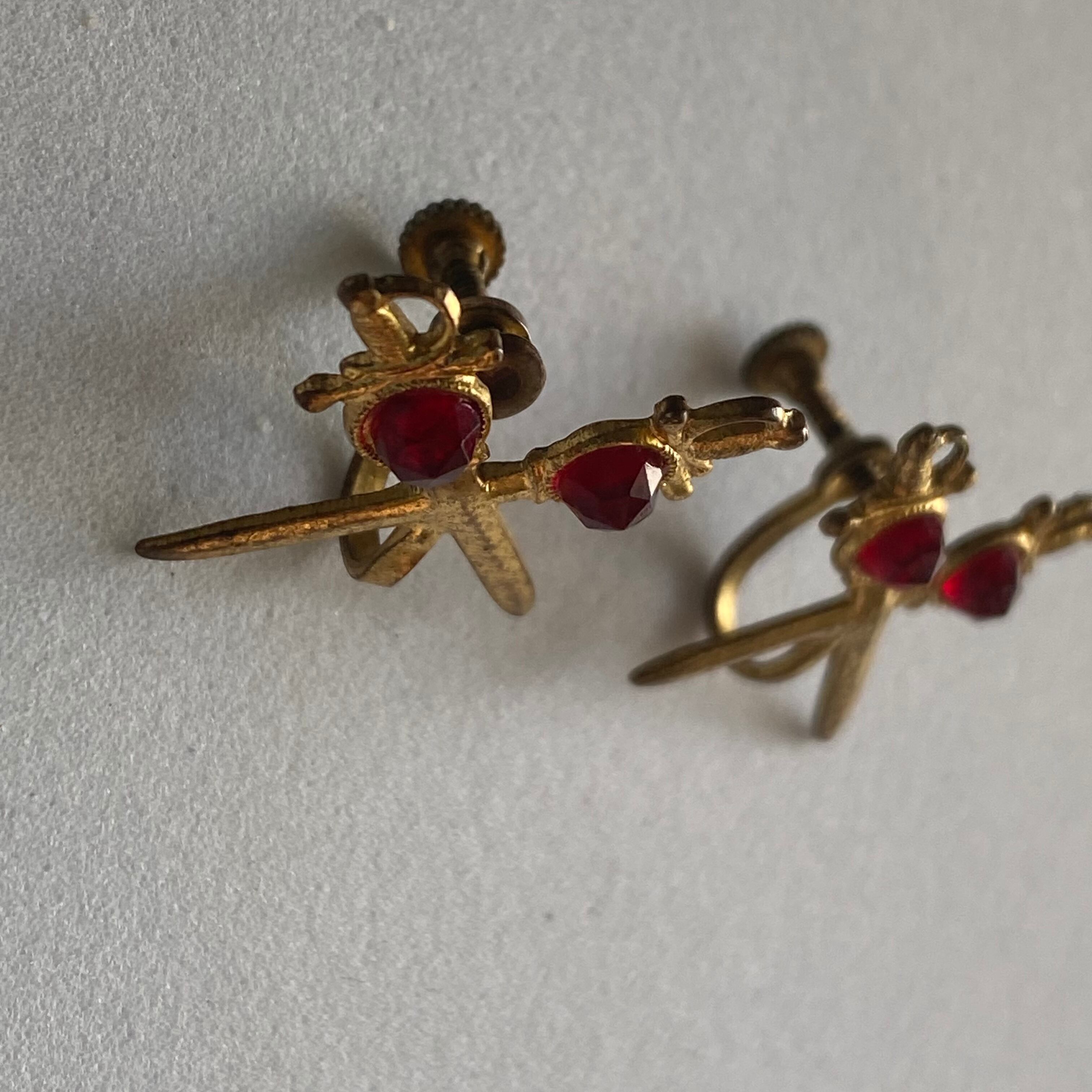 赤ラインストーン×メタルのソードモチーフのイヤリングです。あまりないソードモチーフですのでセレクトしました。