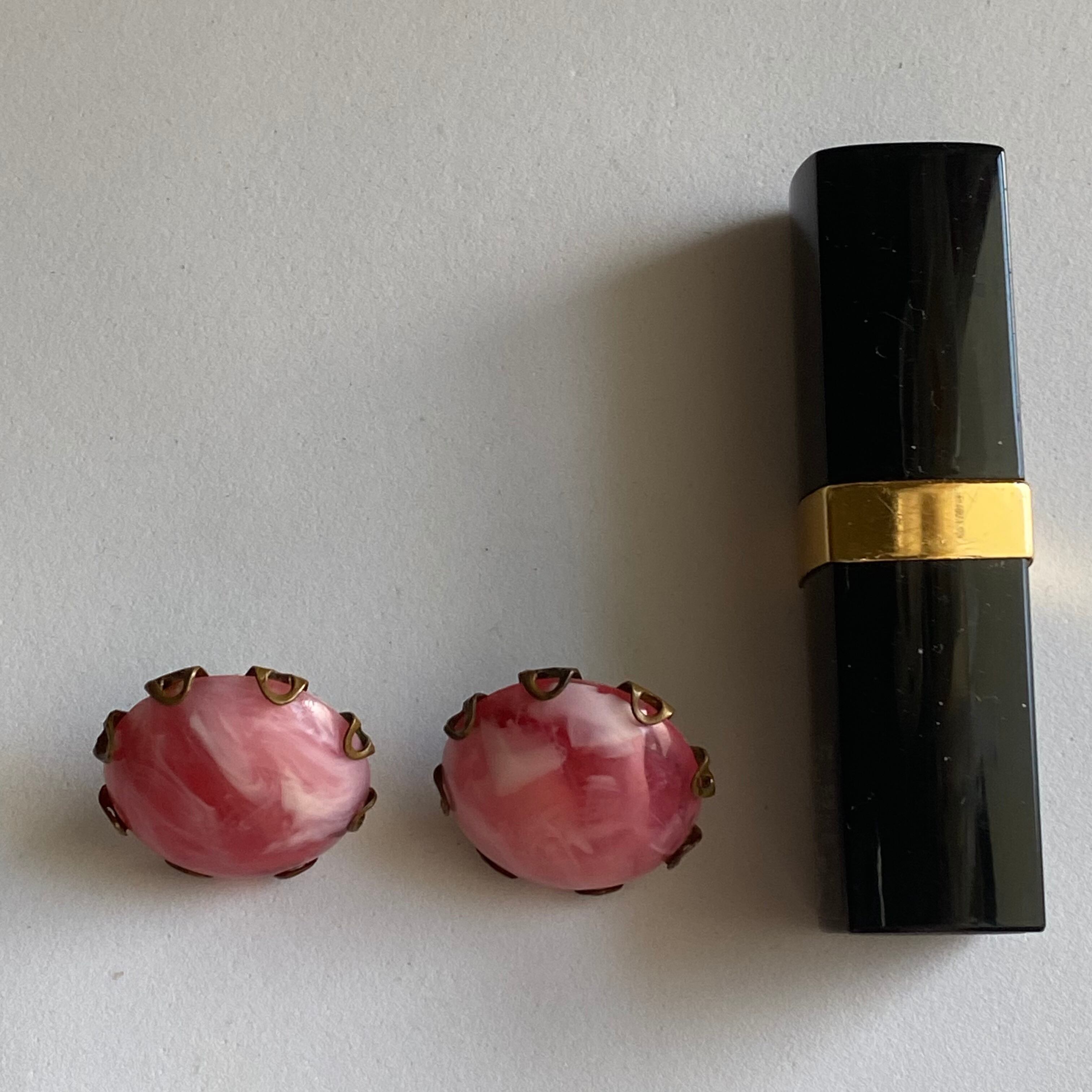 キャンディのようなピンクのパーツが用いられたピアスです。マーブル柄になっていてロマンチックの中に毒っけを感じます。軽量なのもおすすめポイントです。