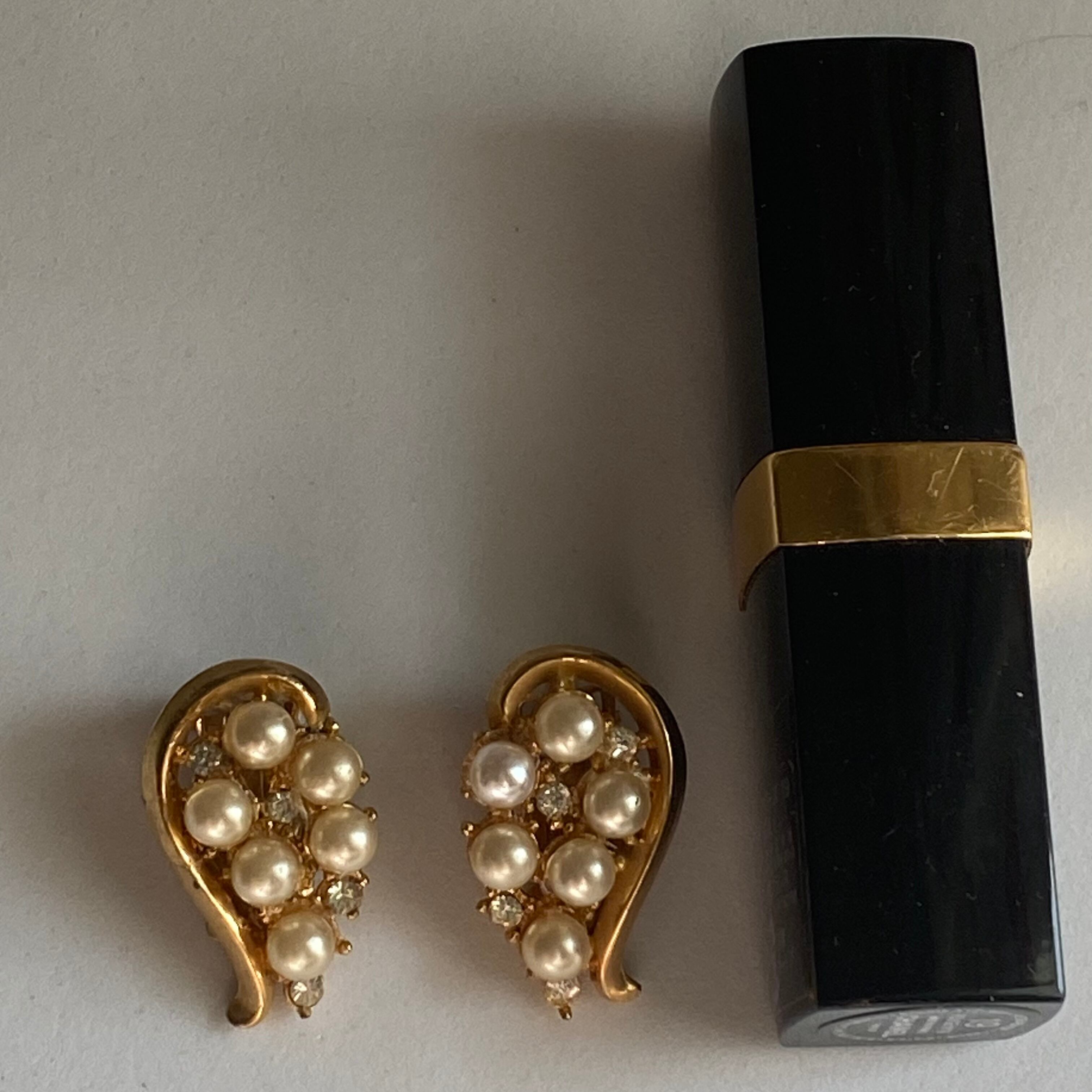 ロマンチックながらも一つ持っていると出番の多いコンビの逸品です。パールがメインでラインストーンはさりげないもでギラギラしすぎず上品な魅力があります。