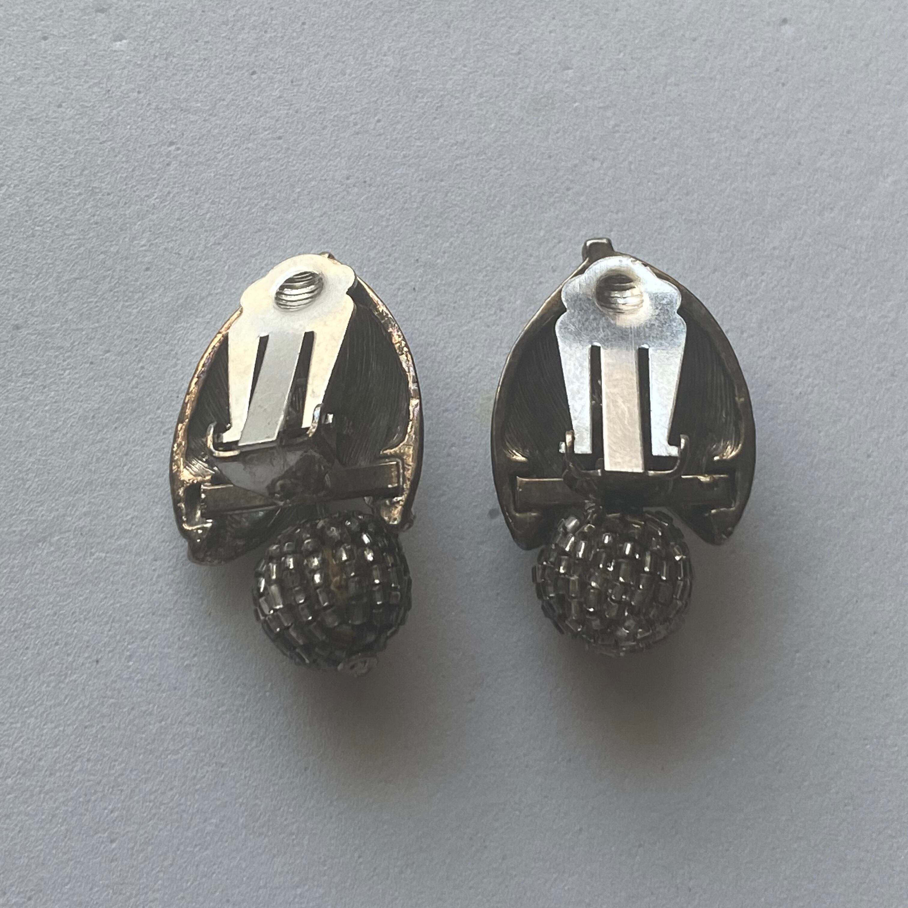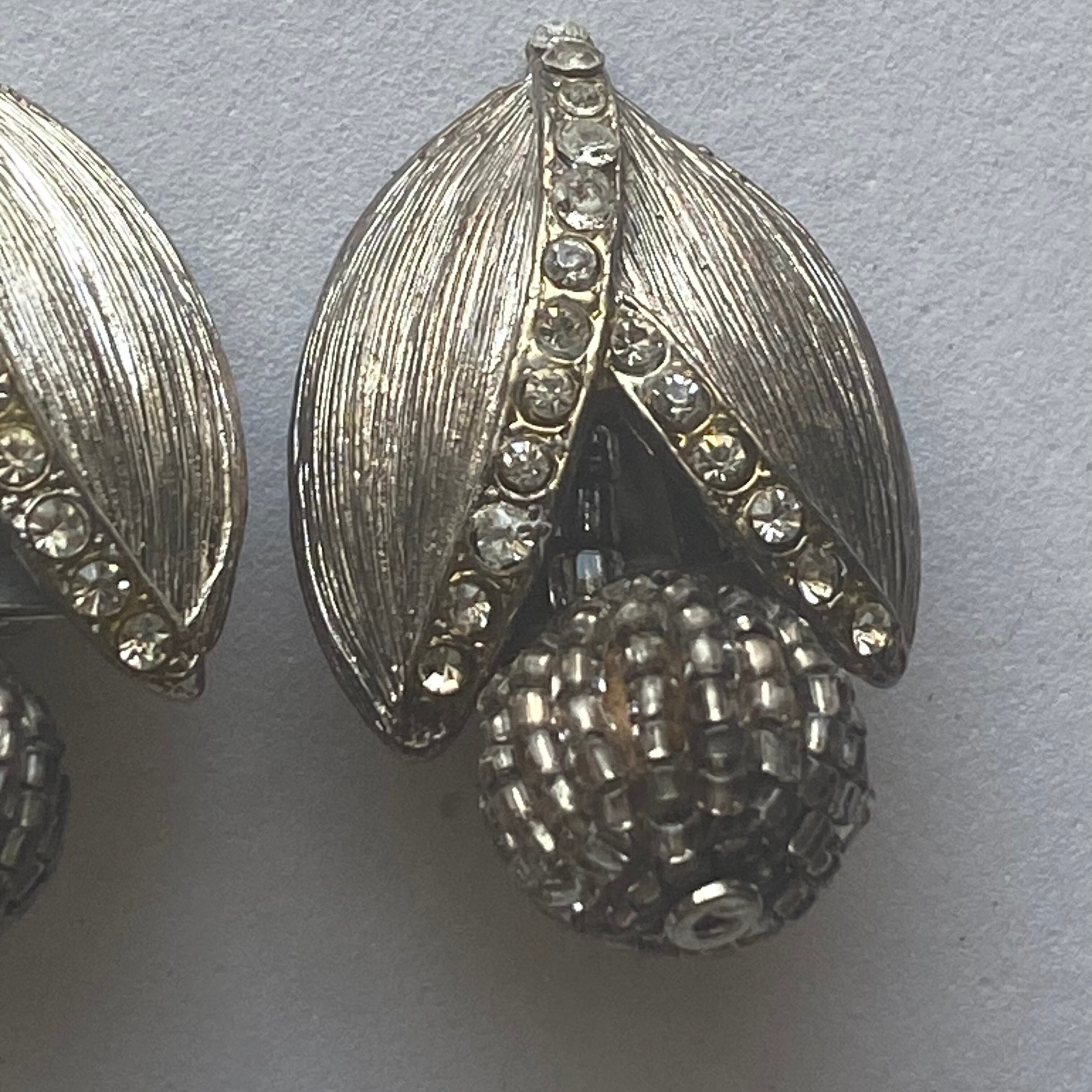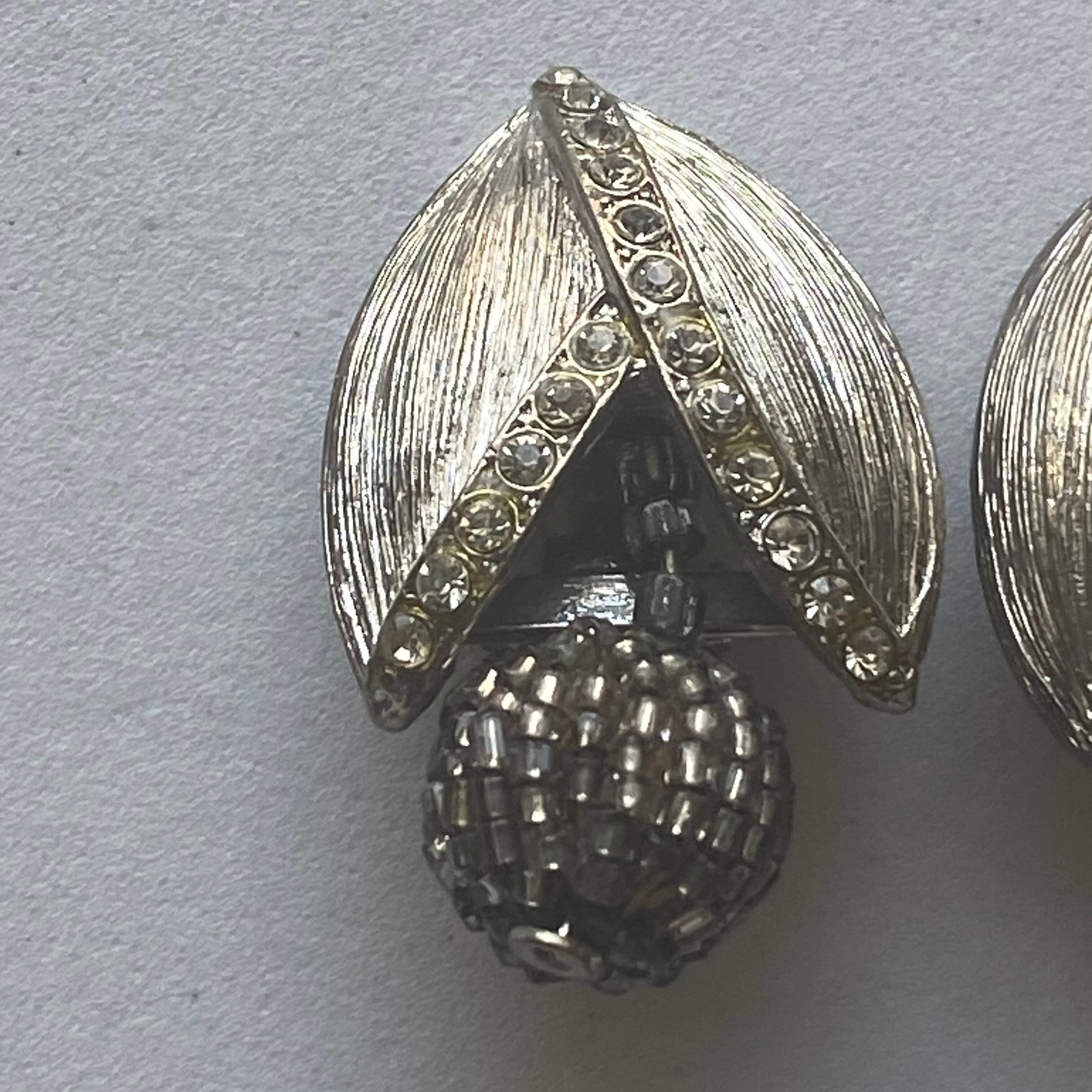 シルバー×ビーズ×ラインストーンのイヤリングです。おそらくチューリップがモチーフでしょうか。ビーズで装飾されたボールも手が混んでいますね。