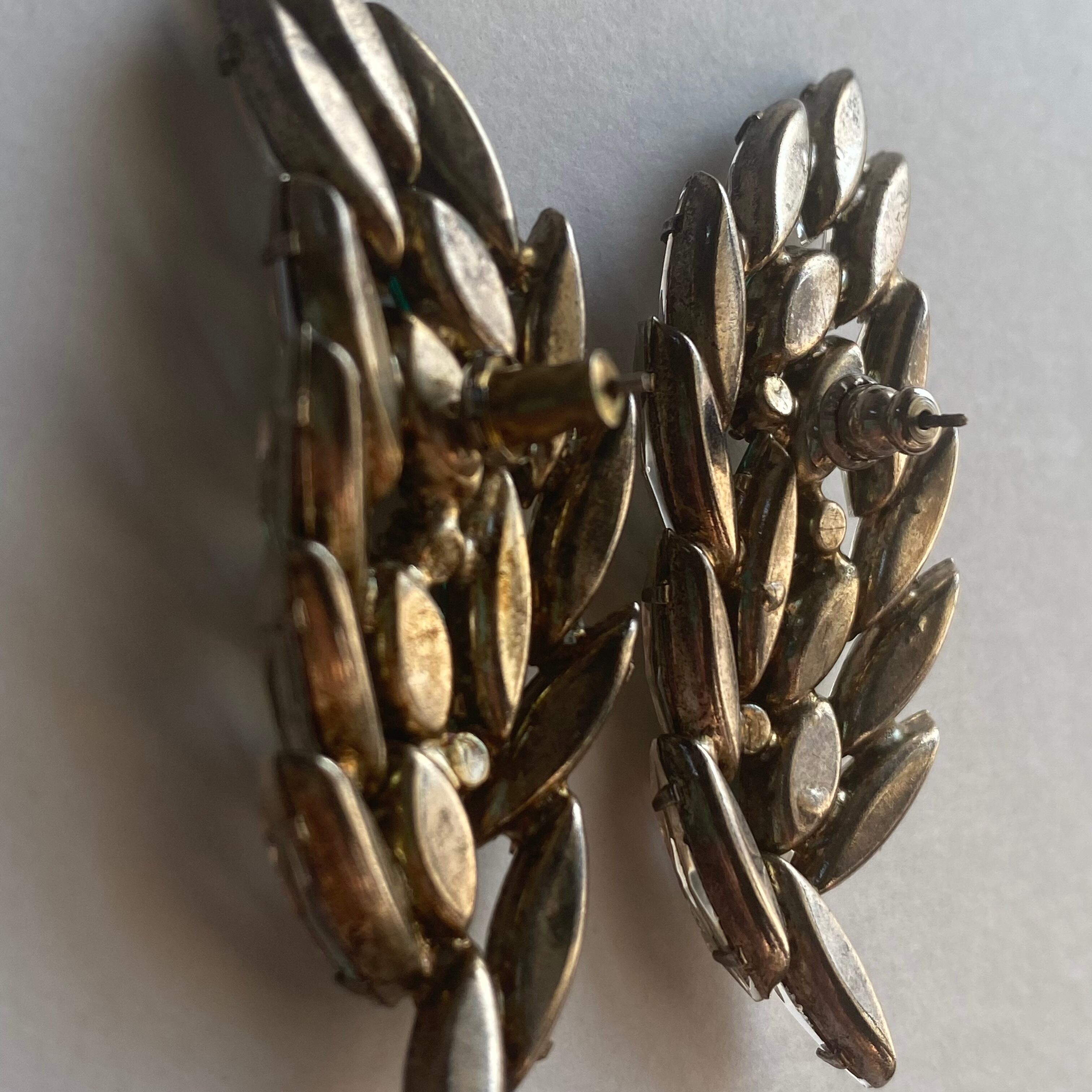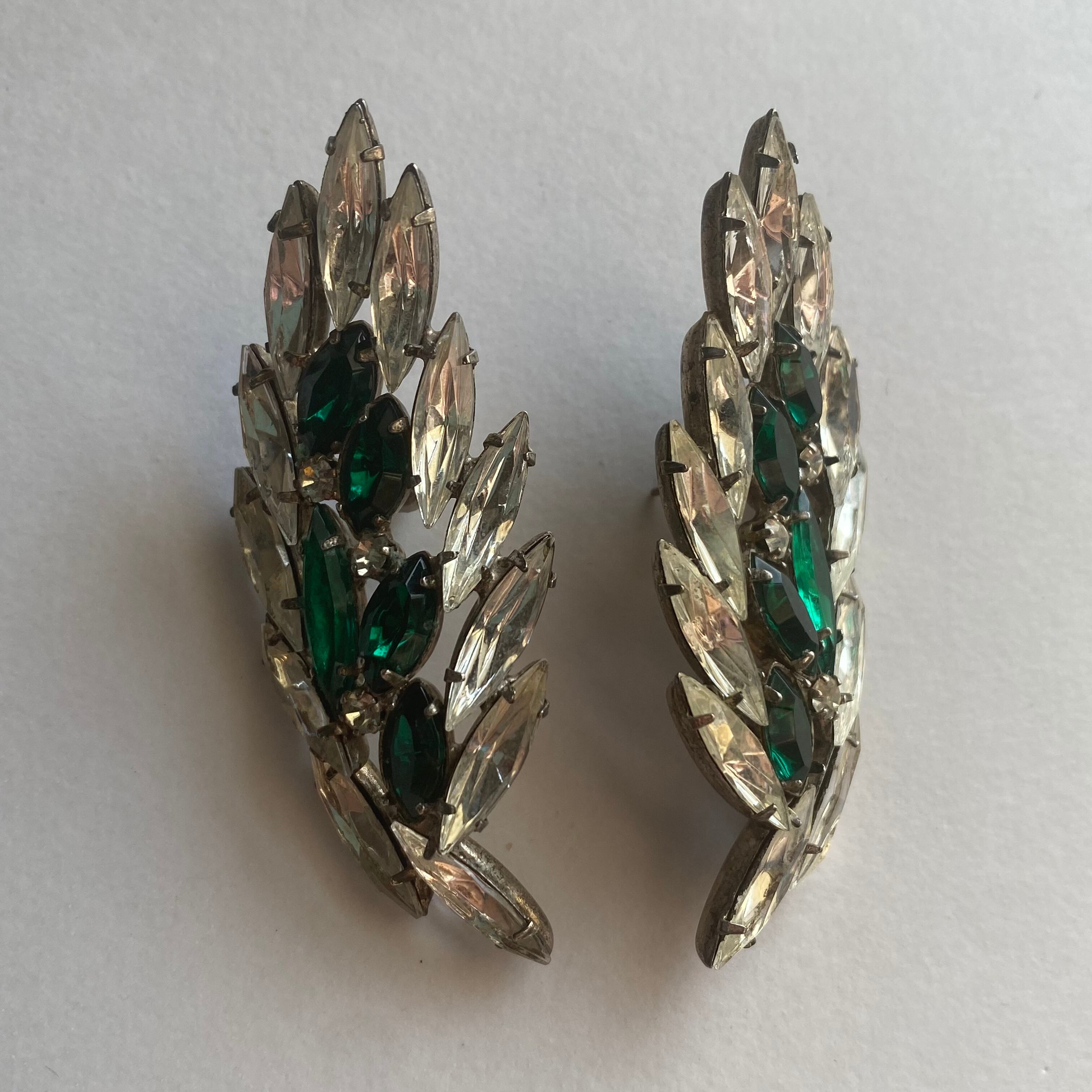 グリーン×クリスタルのラインストーンがふんだんに使用されたピアスです。大振りで目が惹かれてしまう逸品です。パーティシーンにもぴったりです。