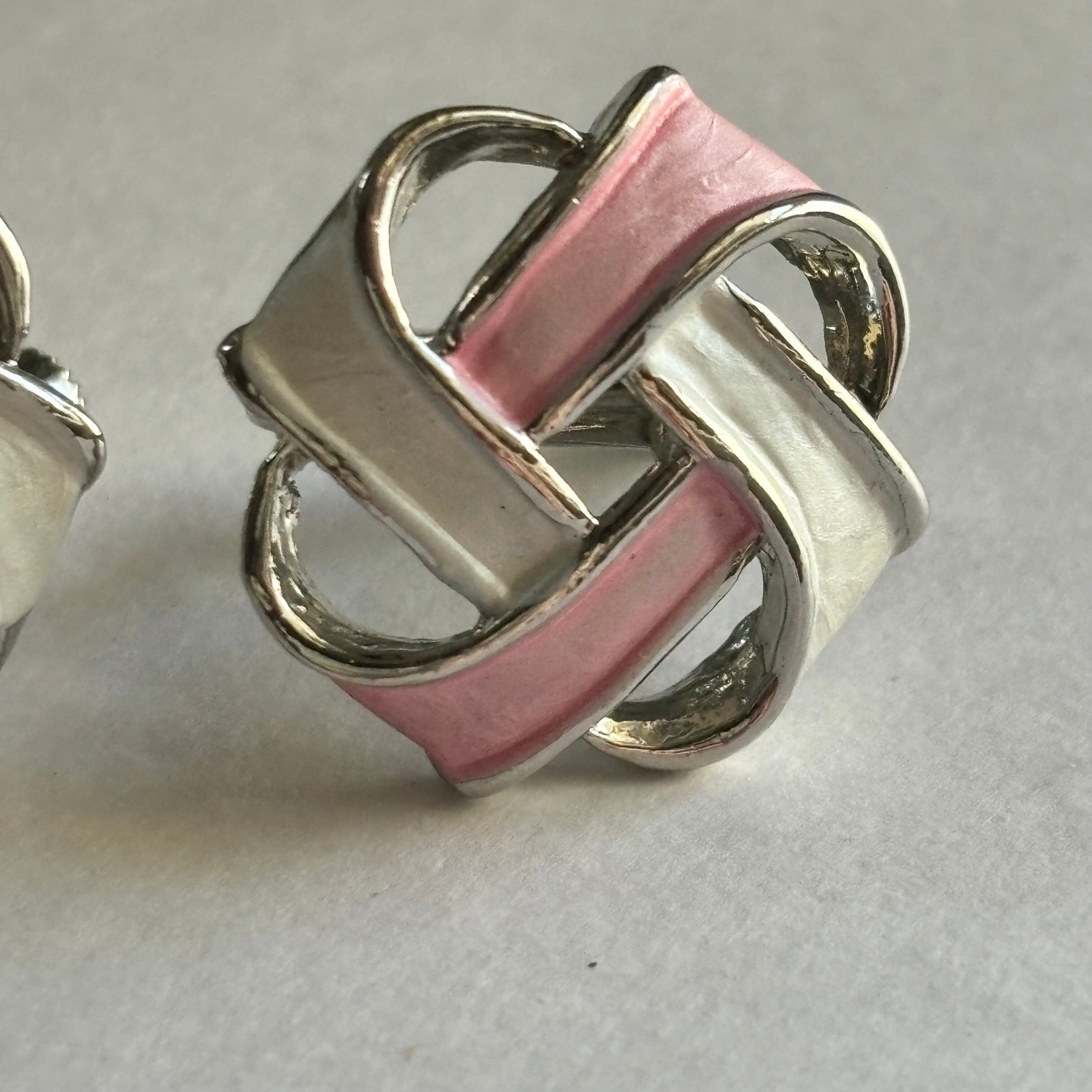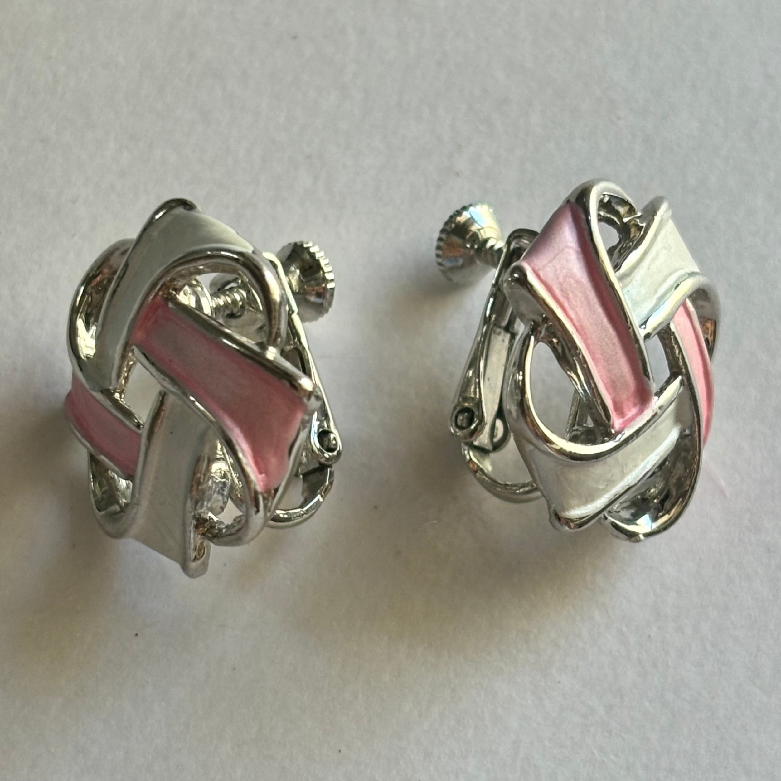 ピンク×ホワイトのイヤリングです。