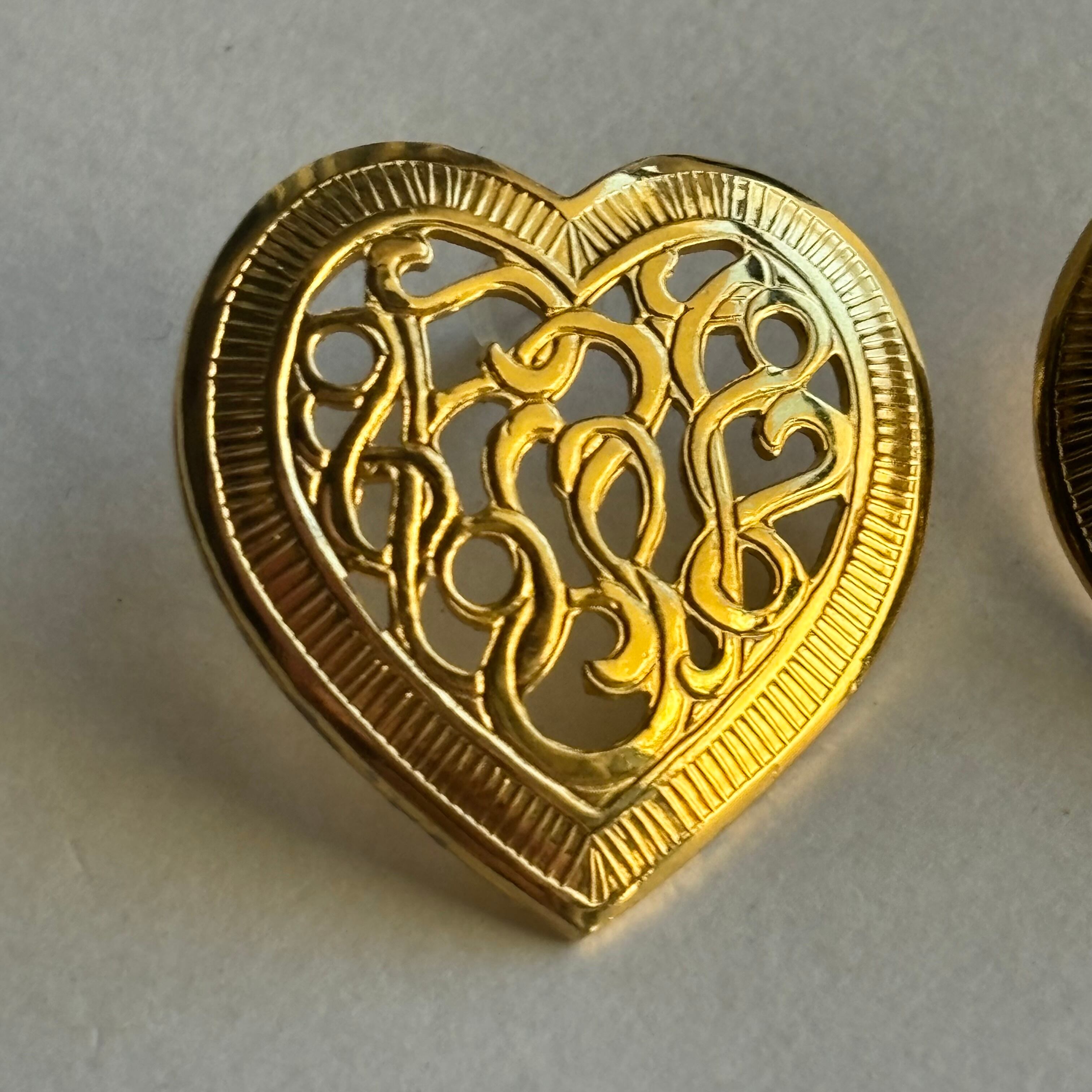 ハートモチーフに透かしの模様が特徴的なピアスです。ゴールド一色で普段使いしやすいのも嬉しいですね。