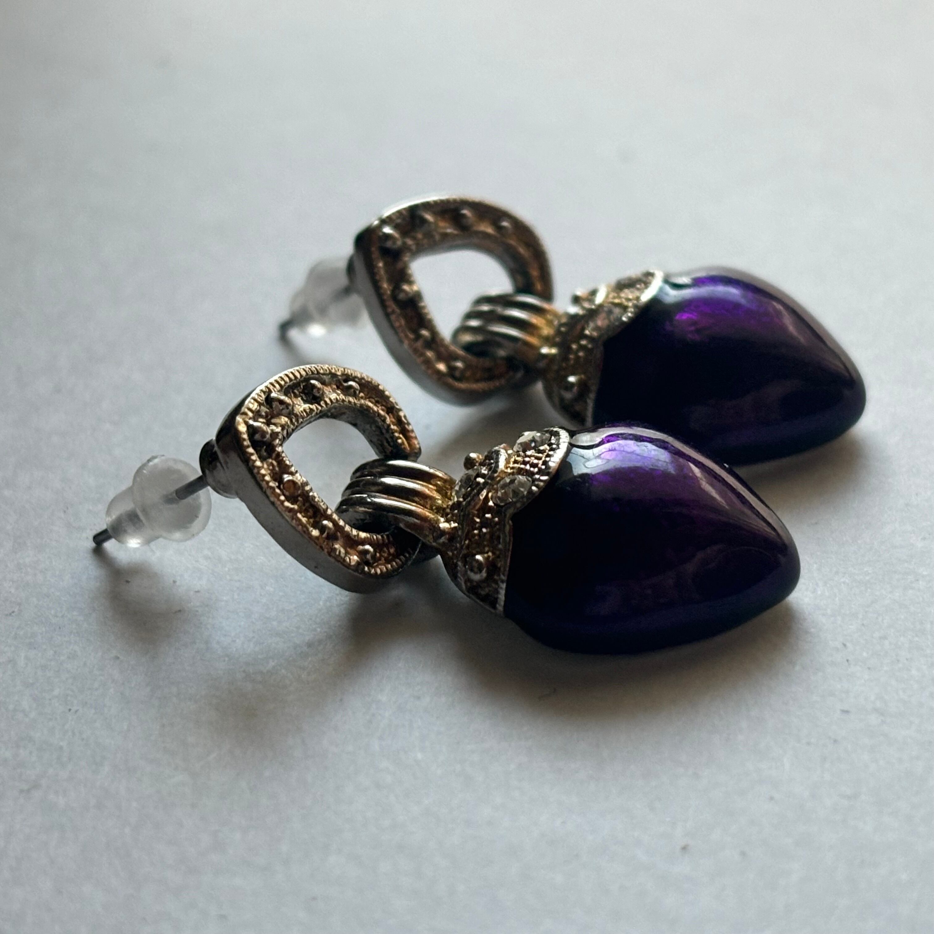 紫エナメル×ゴールド×ラインストーンのピアスです。ヴィンテージらしいエキゾチックかつラグジュアリーな世界観に艶のあるエナメルが妖艶で非常にマッチしています。