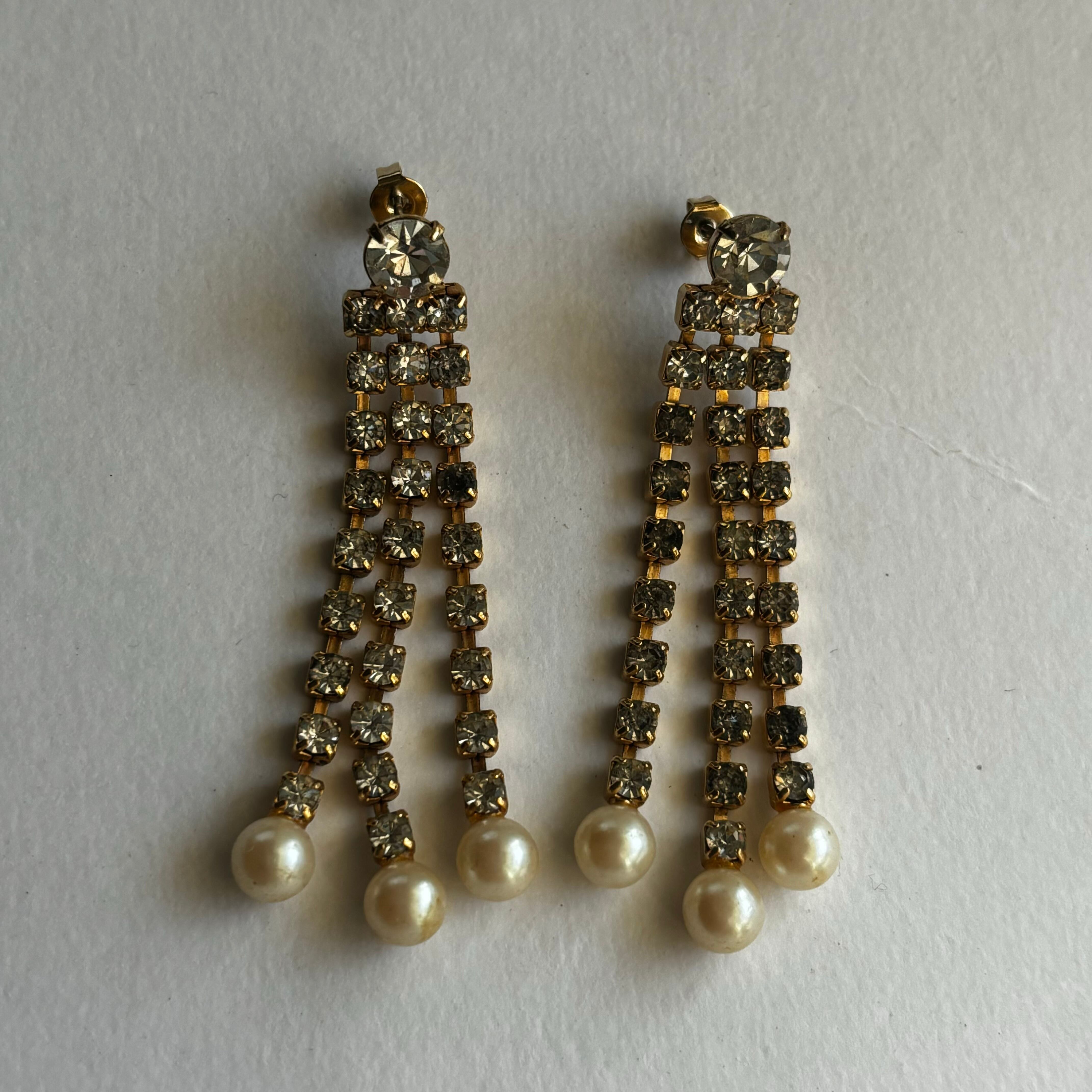 パール×ラインストーンのラグジュアリーな雰囲気のピアスです。パーティーシーンはもちろん、ラフなスタイリングに合わせても雰囲気が出そうです。季節問わず使えるので出番が多そうですね。