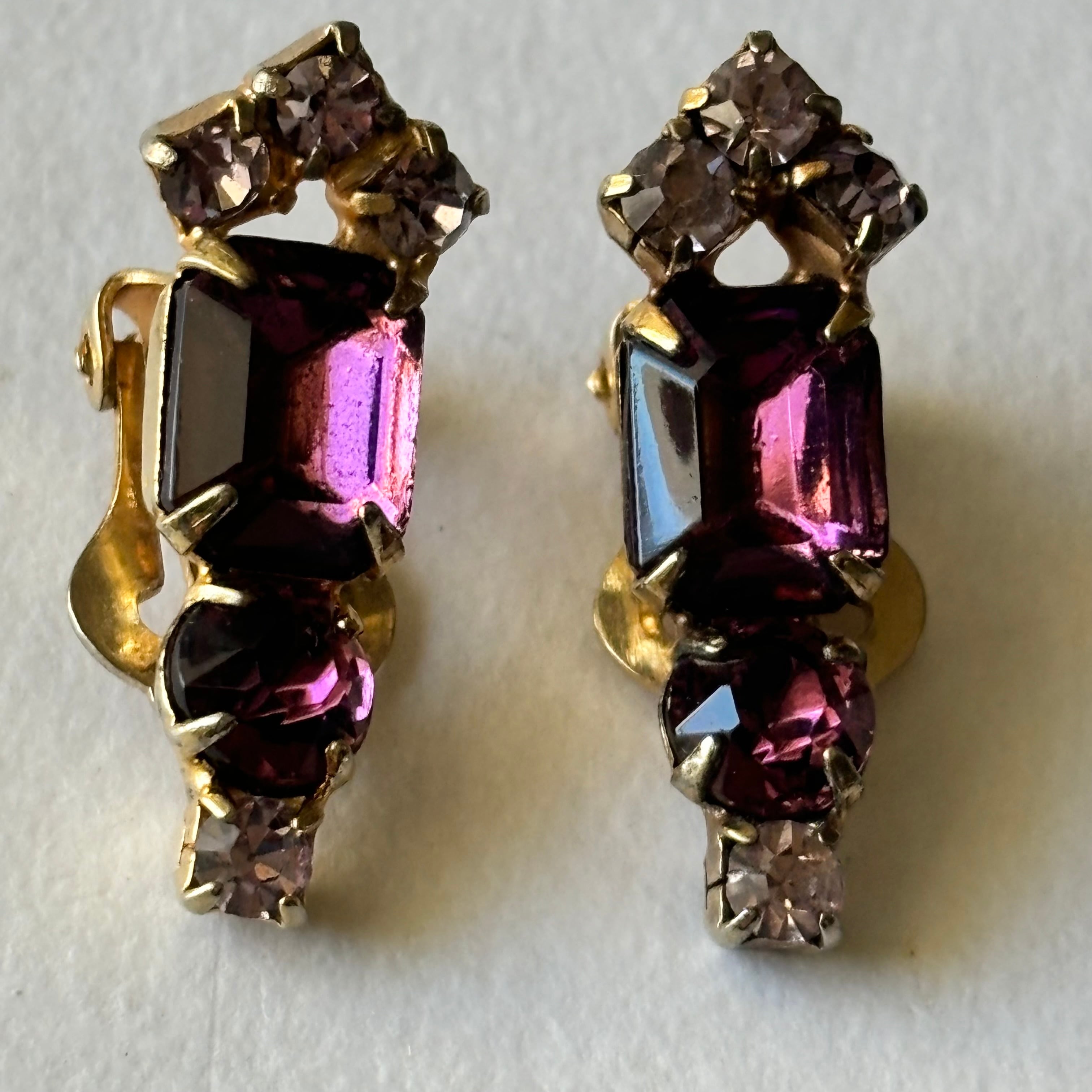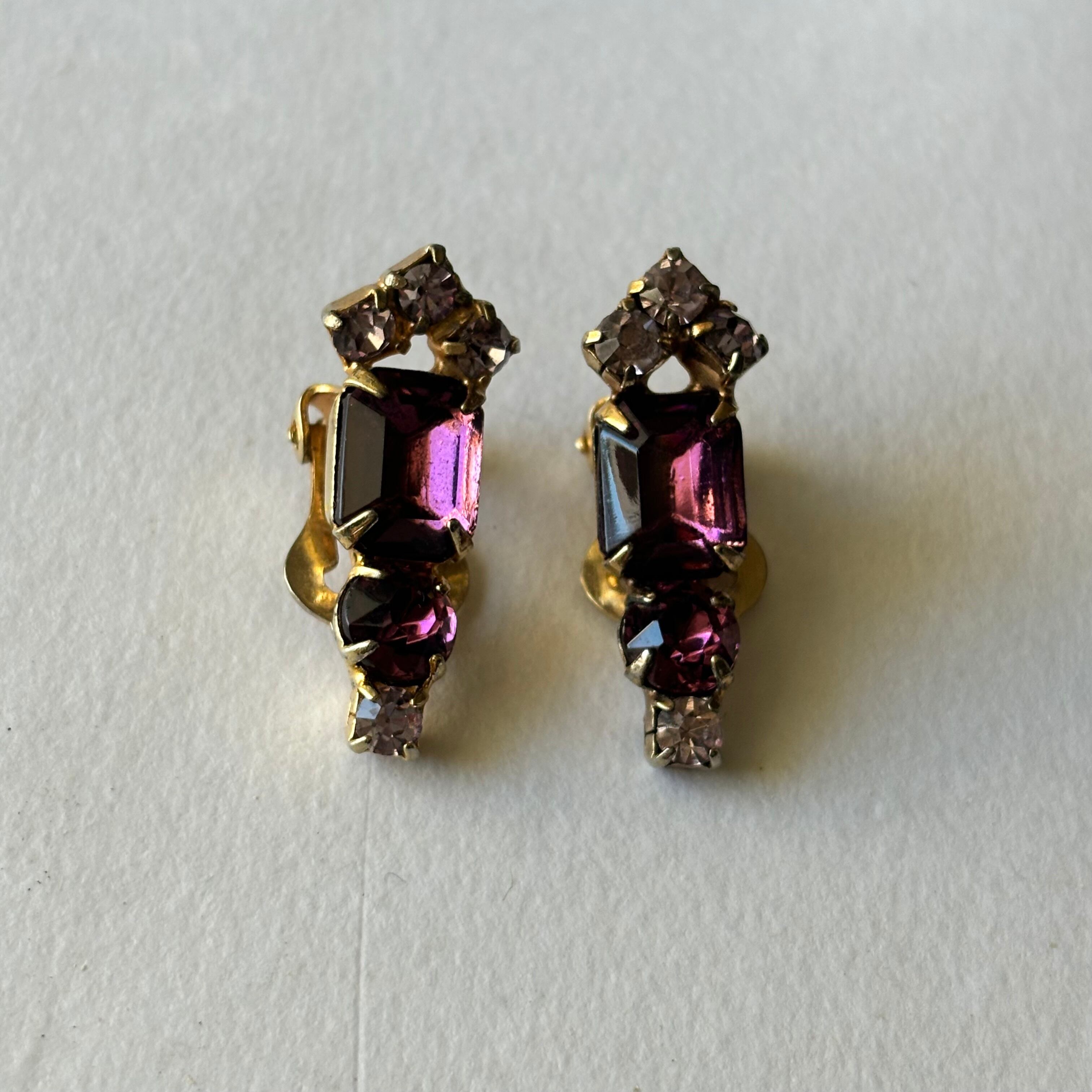 アメジストカラーのラインストーンがふんだんにあしらわれているイヤリングです。